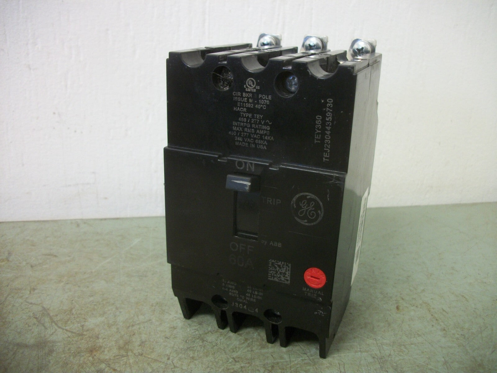 GE TEY CIRCUIT BREAKER TEY360 60AMP 480VOLT 3POLE