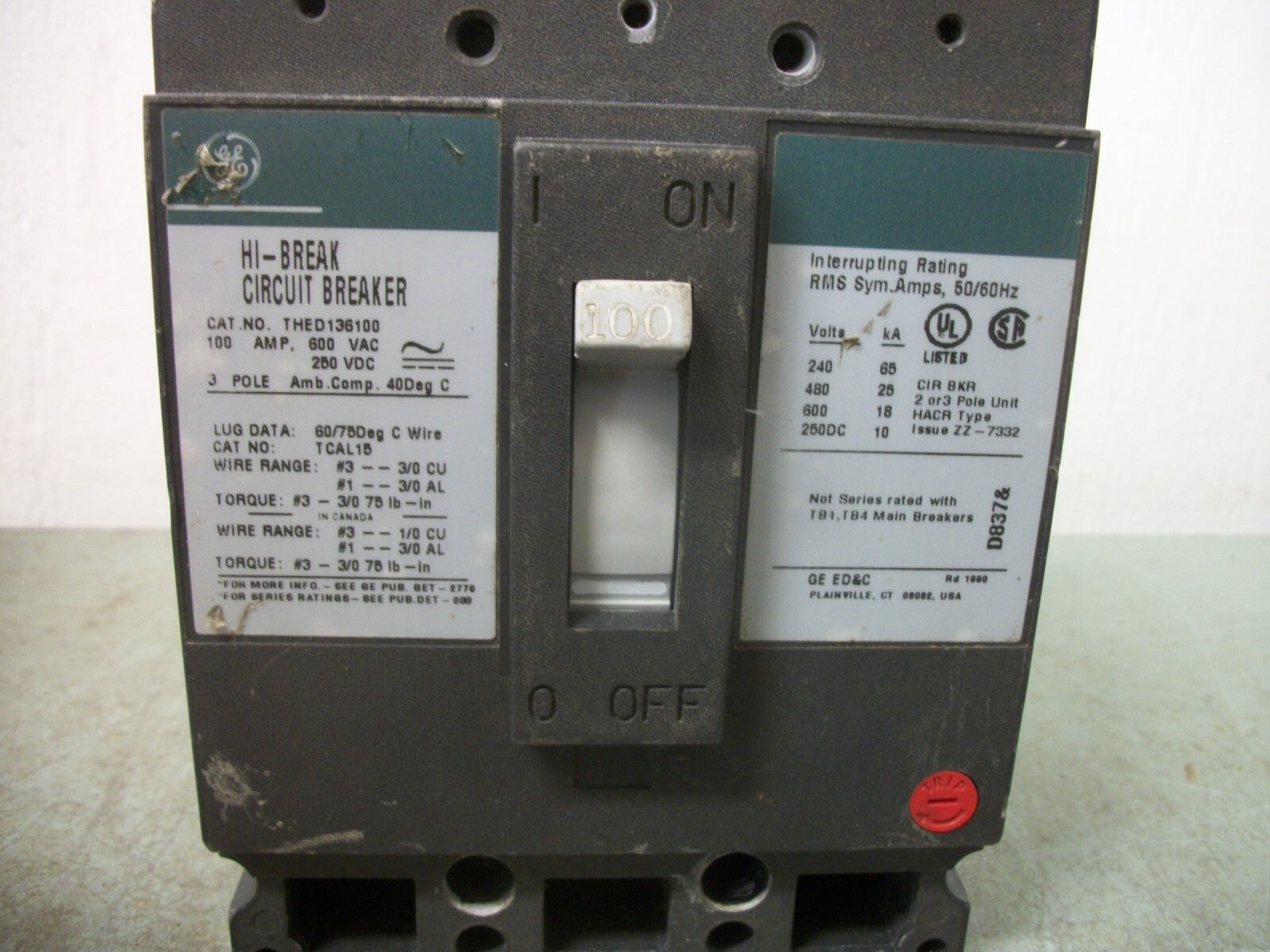 GE THED CIRCUIT BREAKER THED136100 100AMP 600VOLT 3POLE GREEN