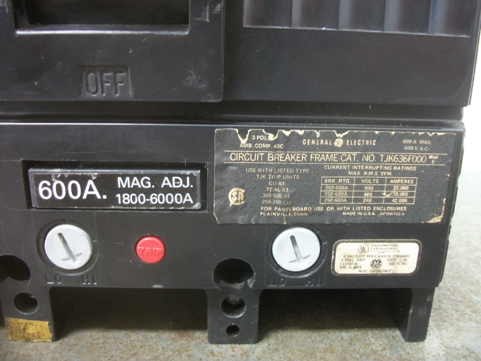 GE TJK CIRCUIT BREAKER TJK636F000 600AMP 600VOLT 3POLE W/600A TRIP