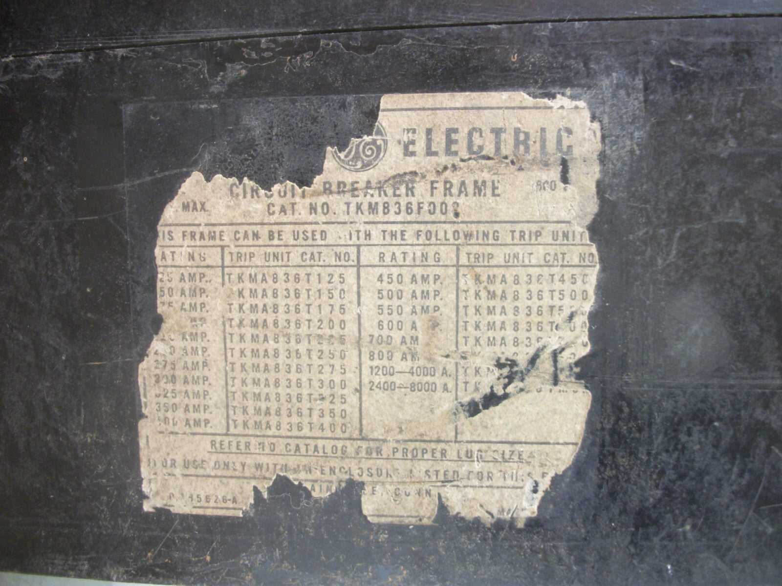 GE TKM CIRCUIT BREAKER TKM836F000 800AMP 600VOLT 3POLE W/800A TRIP