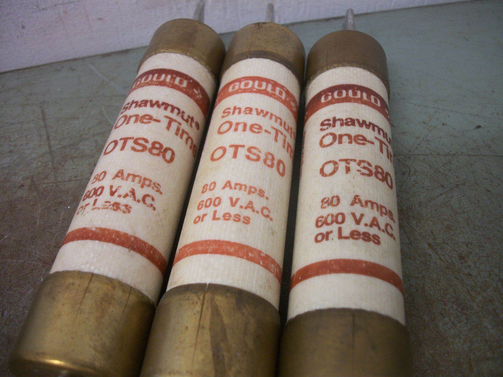 GOULD SHAWMUT LOT OF 3 ONE-TIME FUSES OTS80 80AMP 600VOLT