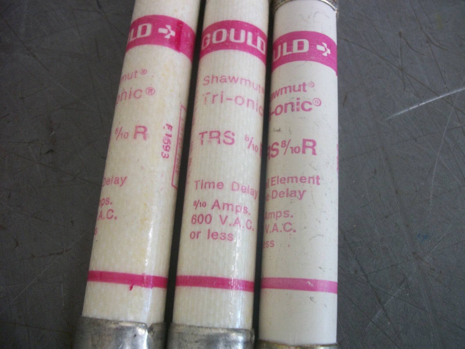 GOULD SHAWMUT LOT OF 3 TRI-ONIC FUSES TRS8/10R 8/10AMP 600VOLT NOB