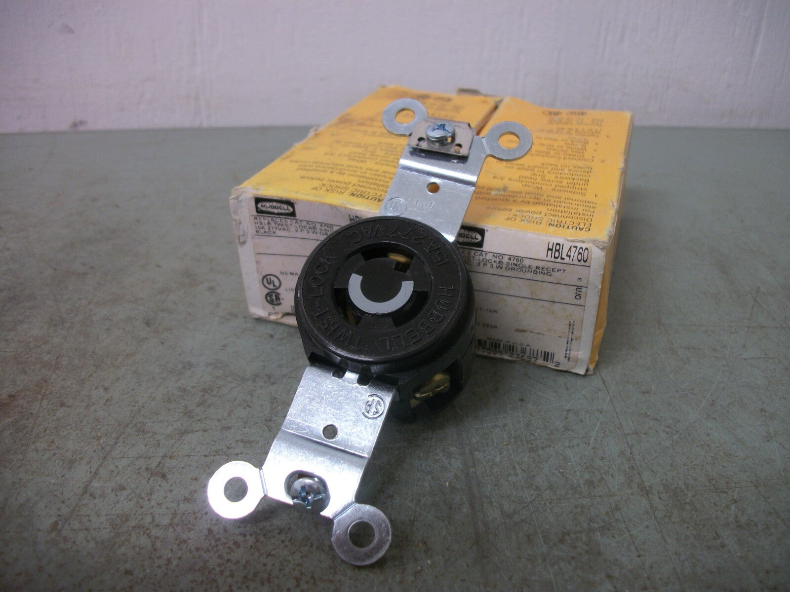 HUBBELL LOT OF 2 TWIST-LOCK SINGLE RECEPTACLES HBL4760 15A 277V 2P 3W GRND NIB