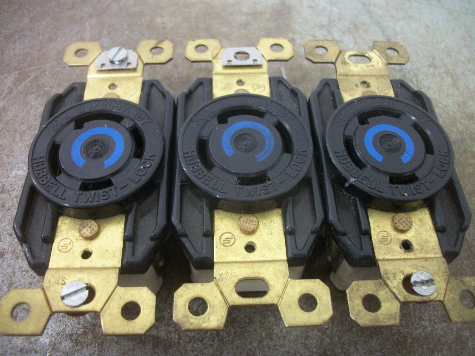 HUBBELL LOT OF 3 TWIST-LOCK RECEPTACLES HBL2750 30AMP 120/208VOLT 3PH 4P 4W