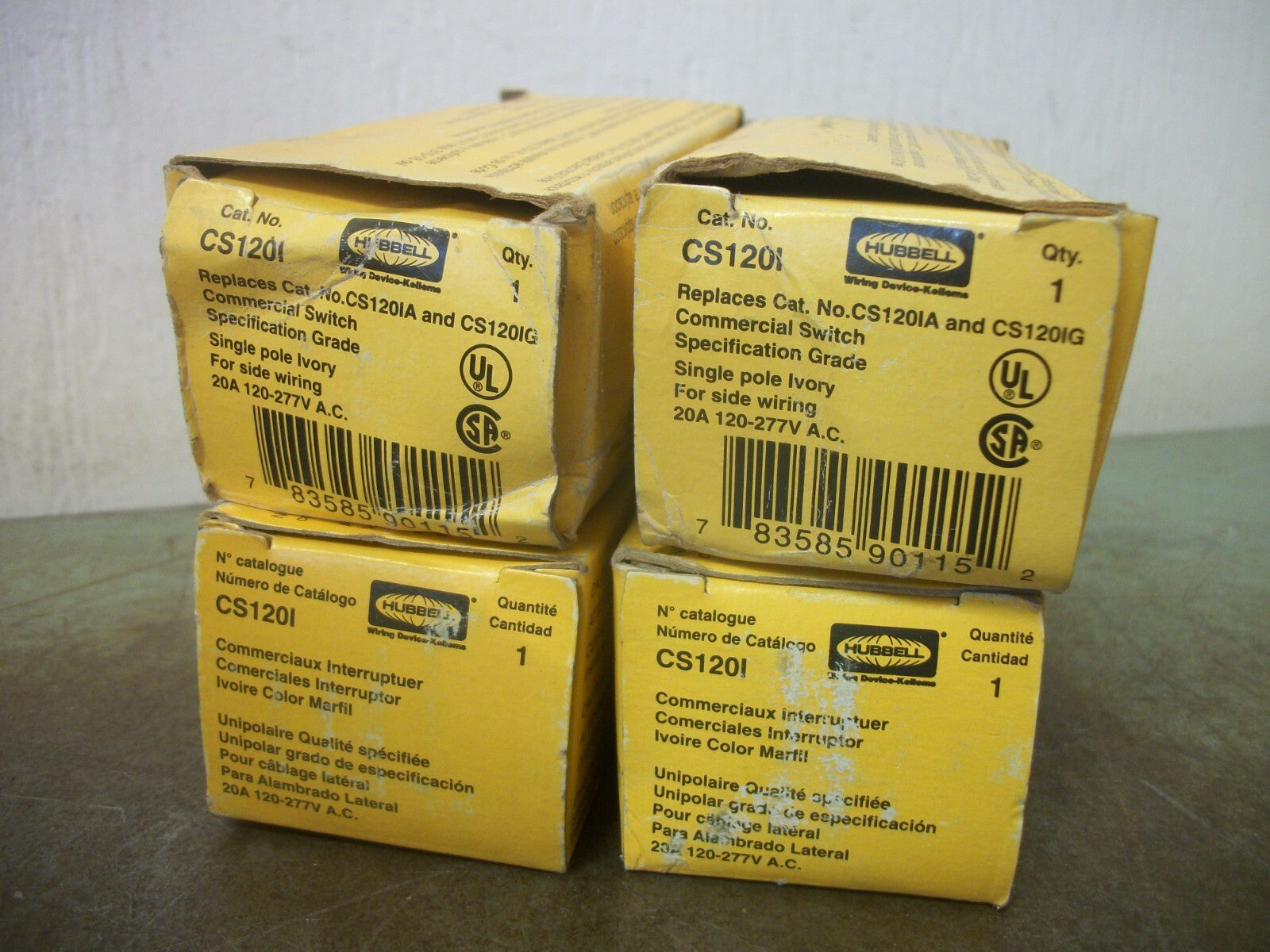 HUBBELL LOT OF 4 IVORY 1POLE COMMERCIAL SWITCHES CS120I 20AMP 120/277VOLT