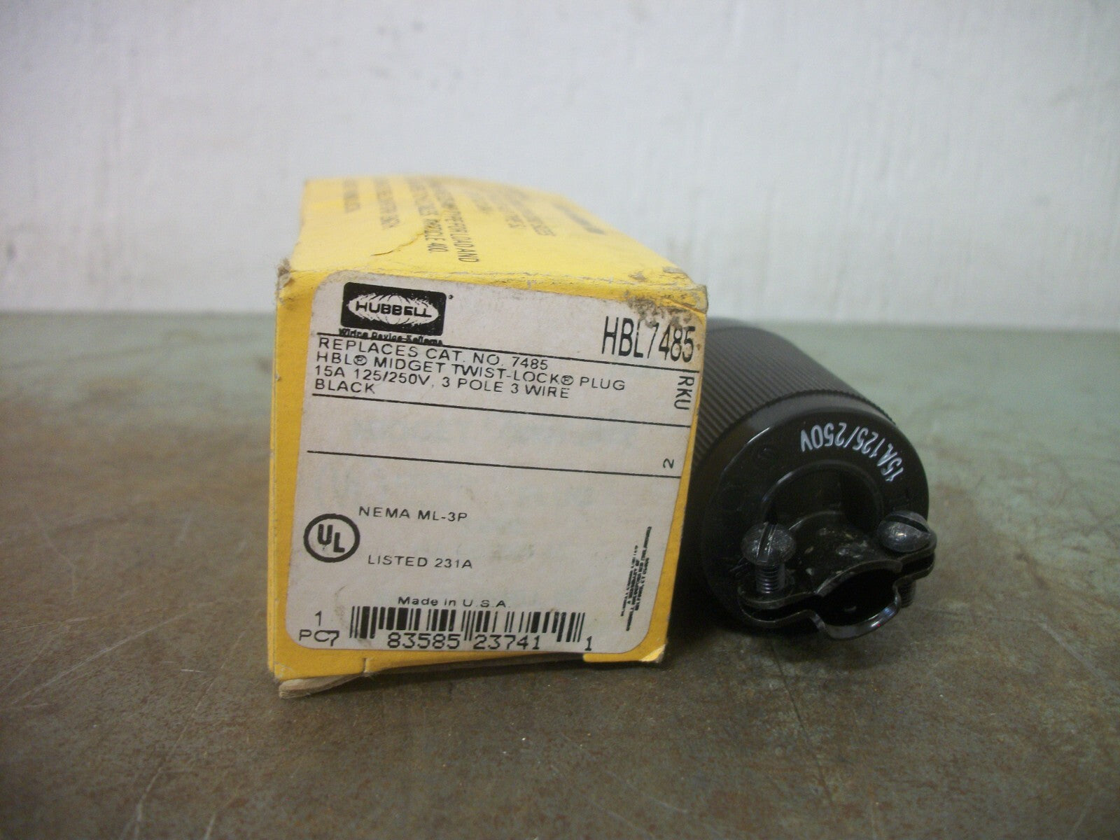 HUBBELL MIDGET TWIST-LOCK PLUG HBL7485 15AMP 125/250VOLT 3P 3W NIB