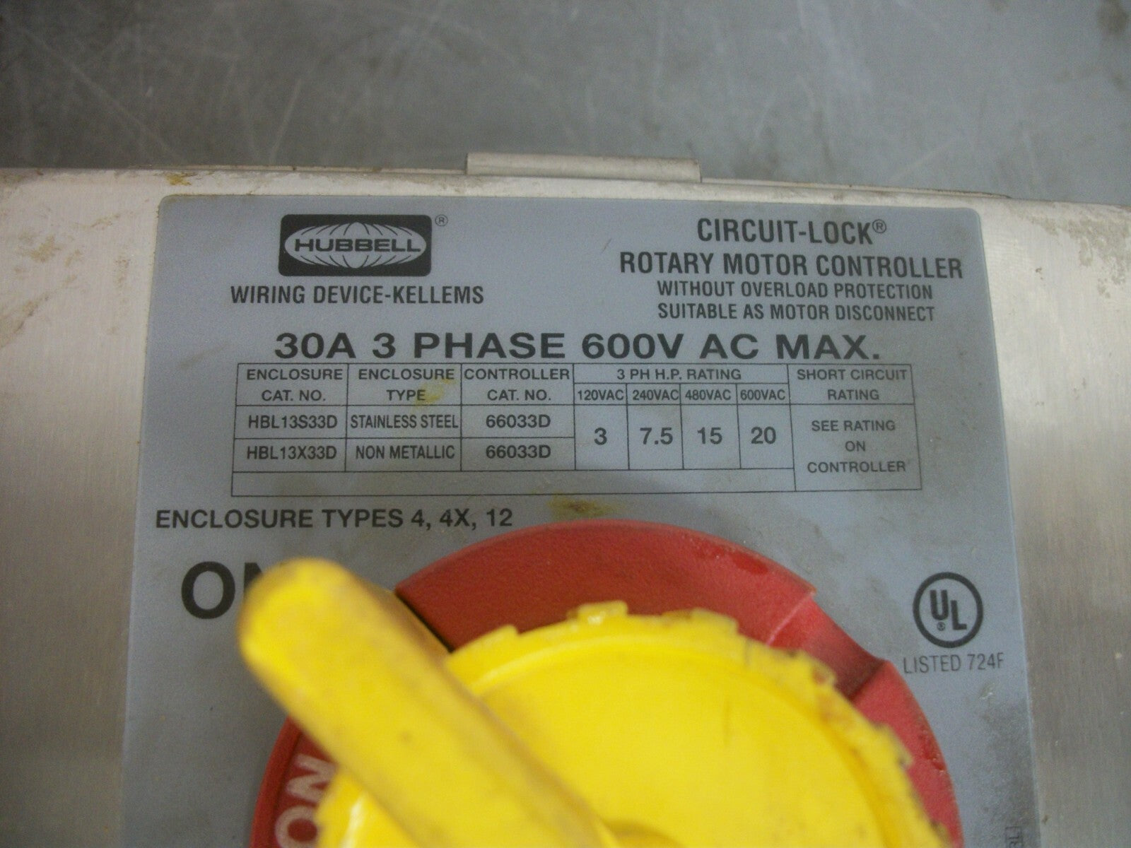 HUBBELL SS CIRCUIT-LOCK ROTARY MOTOR CONTROLLER HBL1 30AMP 600VOLT 3PH 20HP