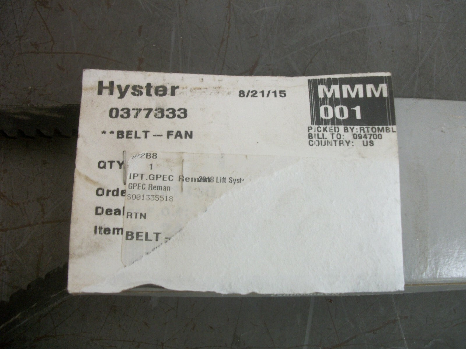 HYSTER FAN BELT 0377333 NEW