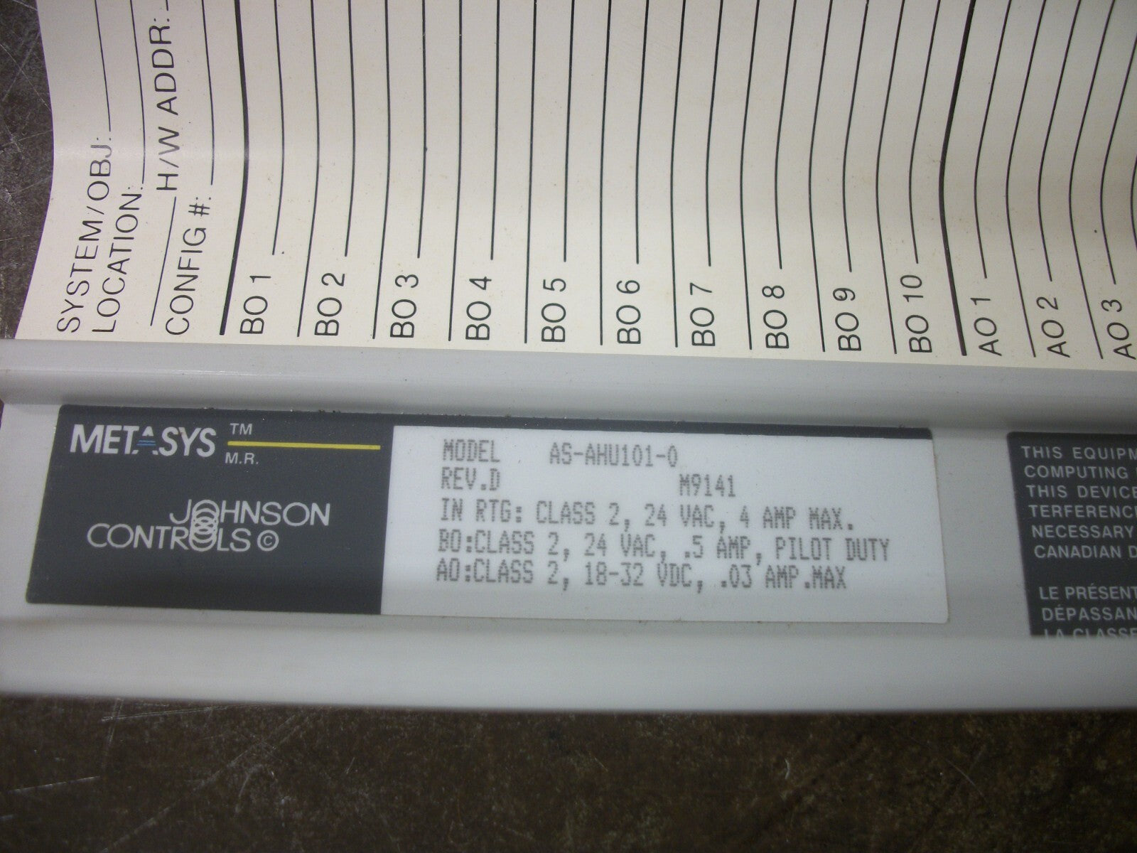 JOHNSON CONTROLS METASYS AIR HANDLING UNIT CONTROLLER AS-AHU101-0