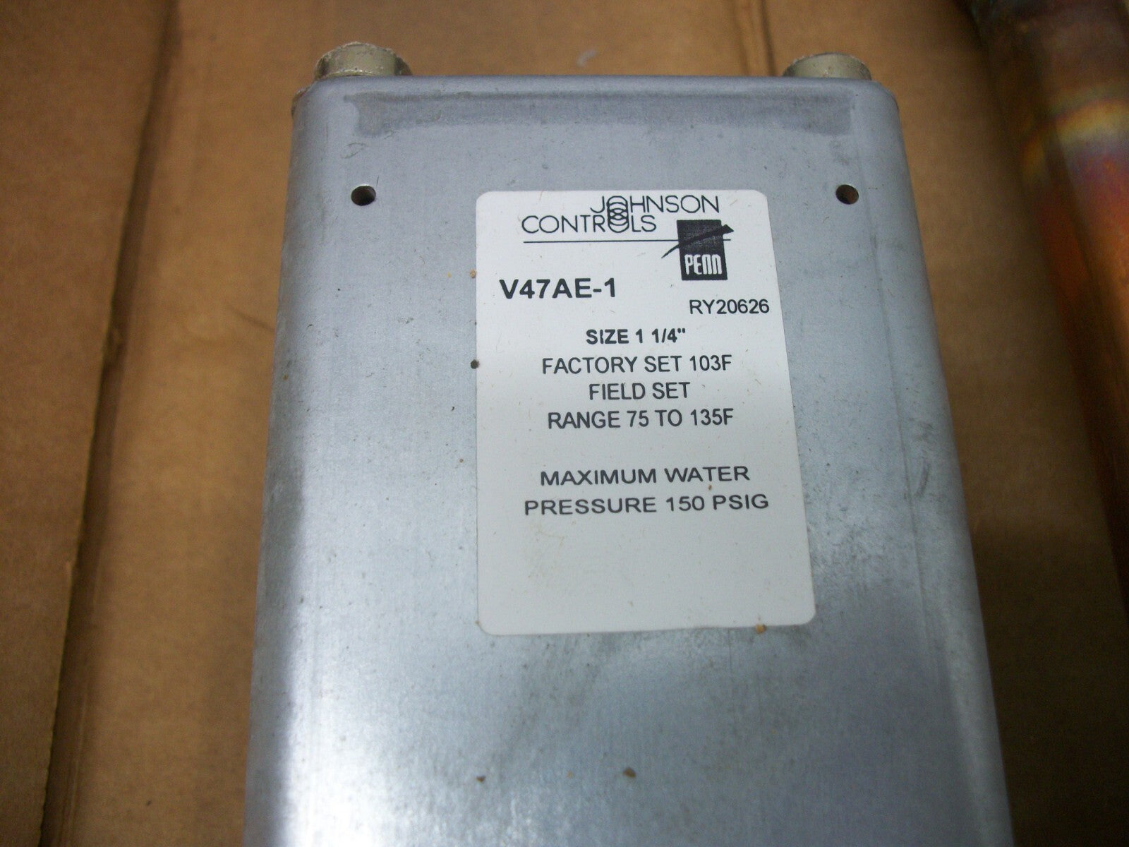 JOHNSON CONTROLS V47AE-1 SIZE 1-1/4" WATER VALVE V47AE-1C 75-135 DEG F NIB
