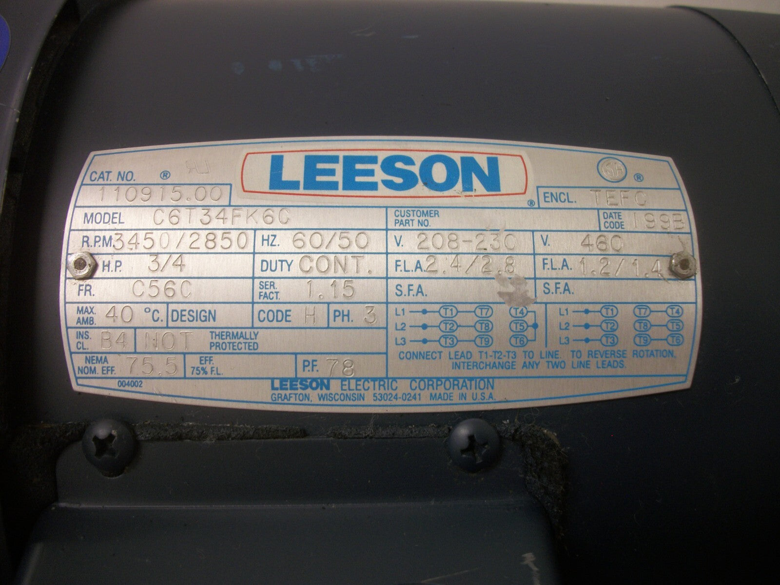 LEESON 3/4HP C56C TEFC AC MOTOR 110915.00 460VOLT 3PH 3450RPM