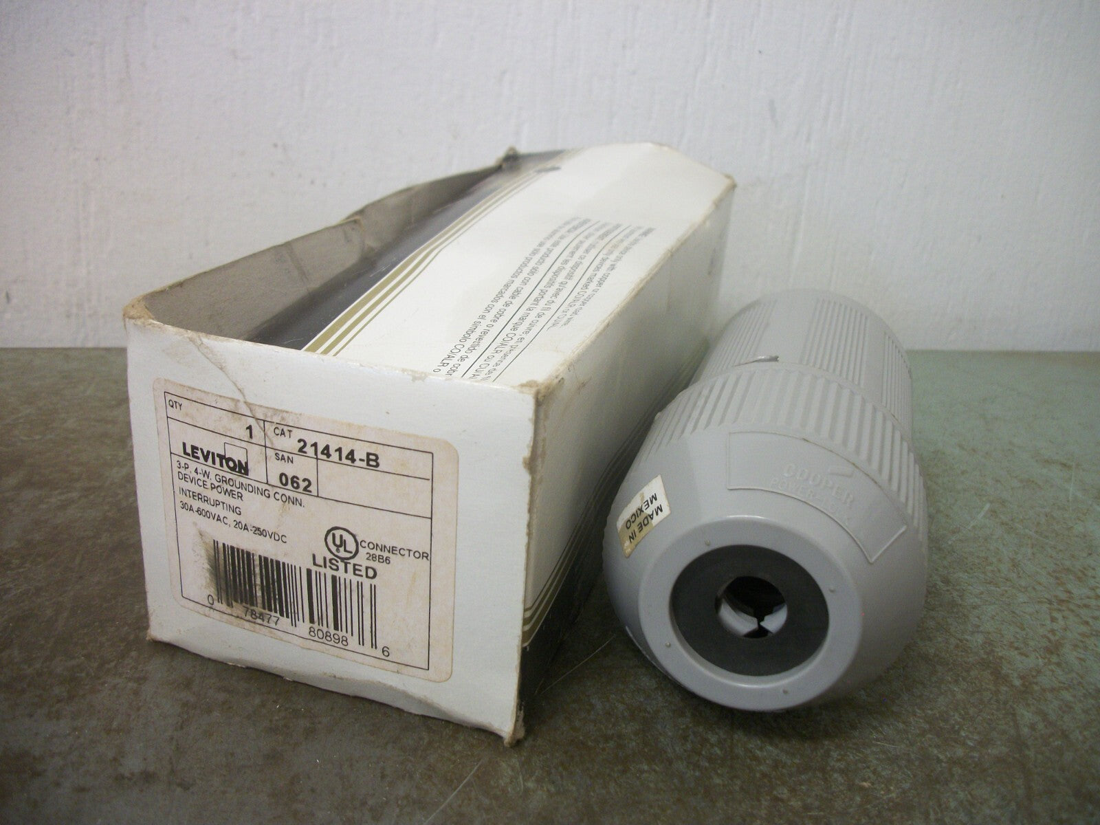 LEVITON GROUNDING CONNECTOR 21414-B 30AMP 600VOLT 3POLE 4W NIB