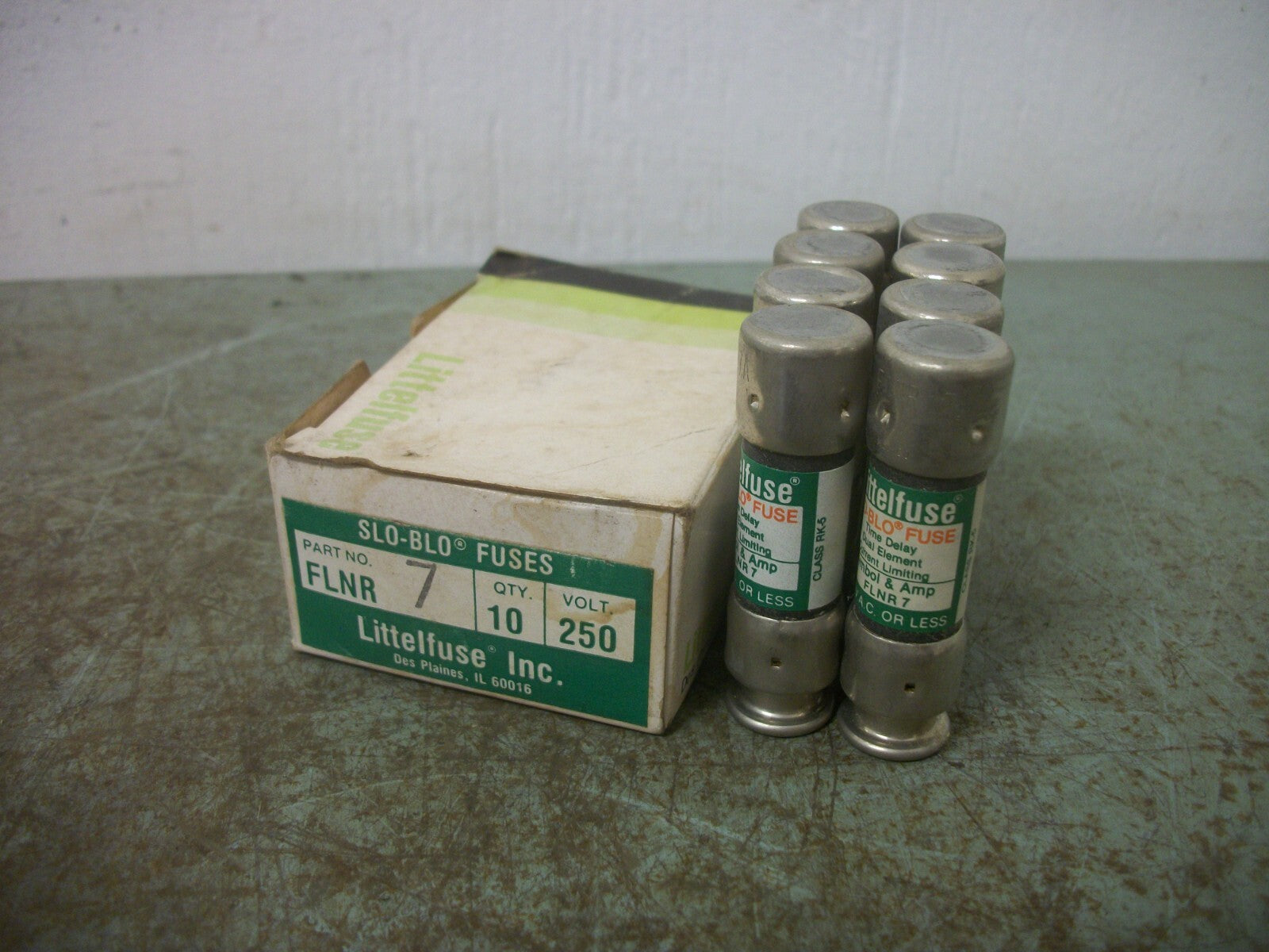 LITTELFUSE BOX OF 8 SLO-BLO FUSES FLNR7 7AMP 250VOLT NIB