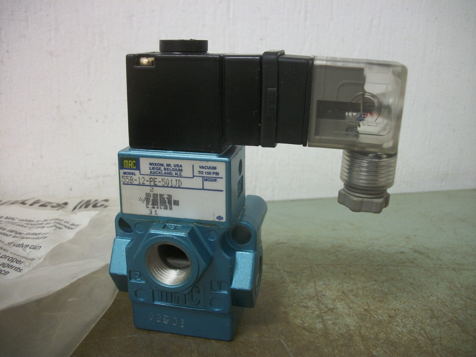 MAC SOLENOID VALVE 55B-12-PE-501JD 12-24VCOIL 150PSI NEW