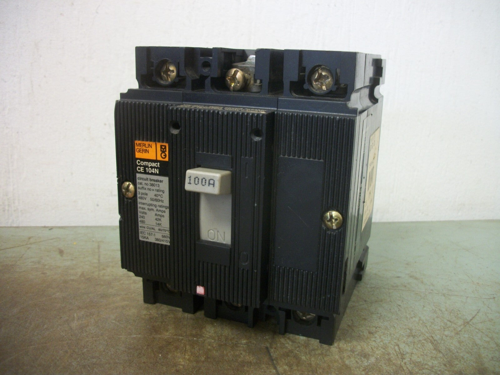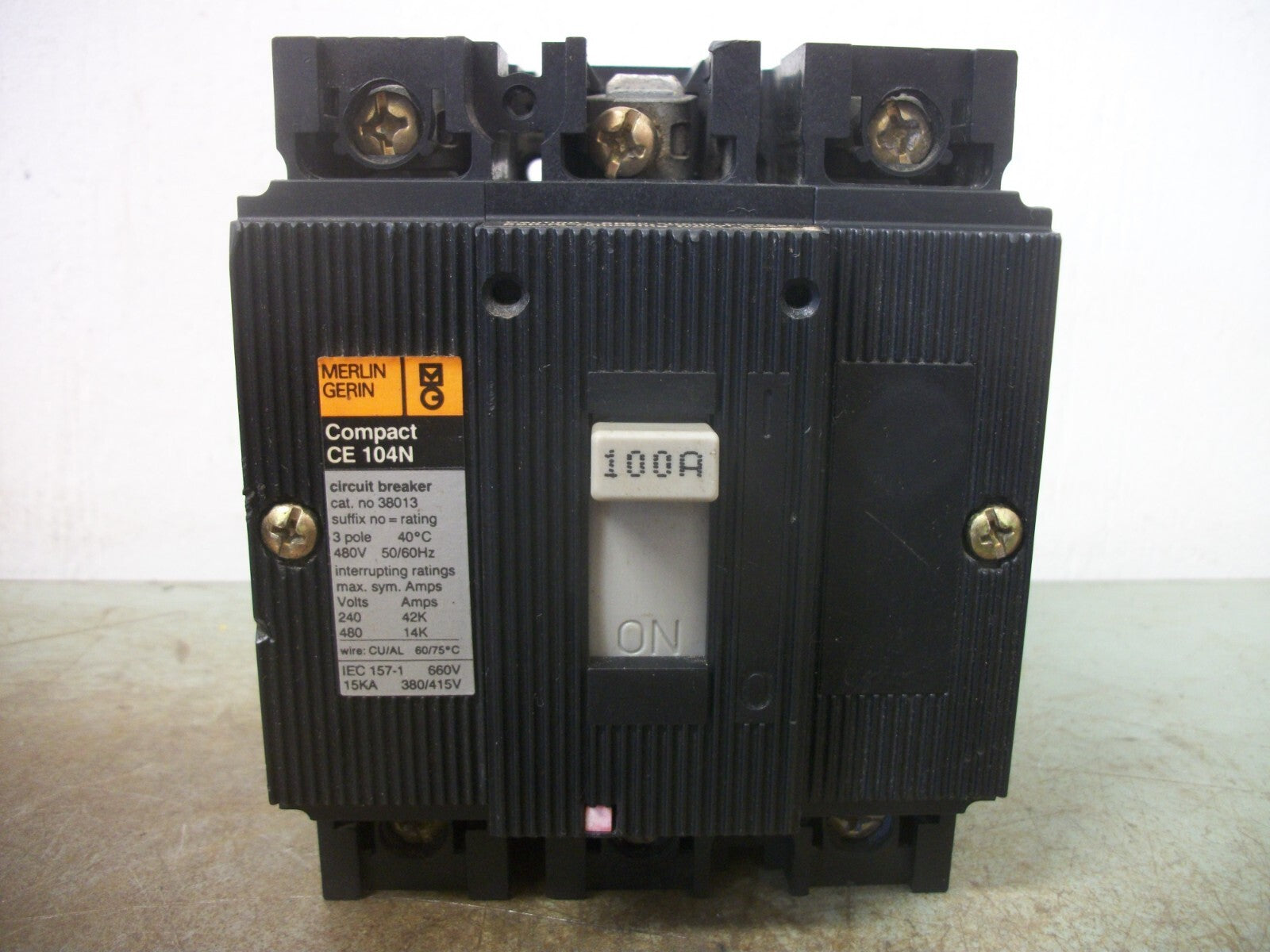 MERLIN GERIN COMPACT CE 104N CIRCUIT BREAKER 38013 100AMP 480VOLT 3POLE