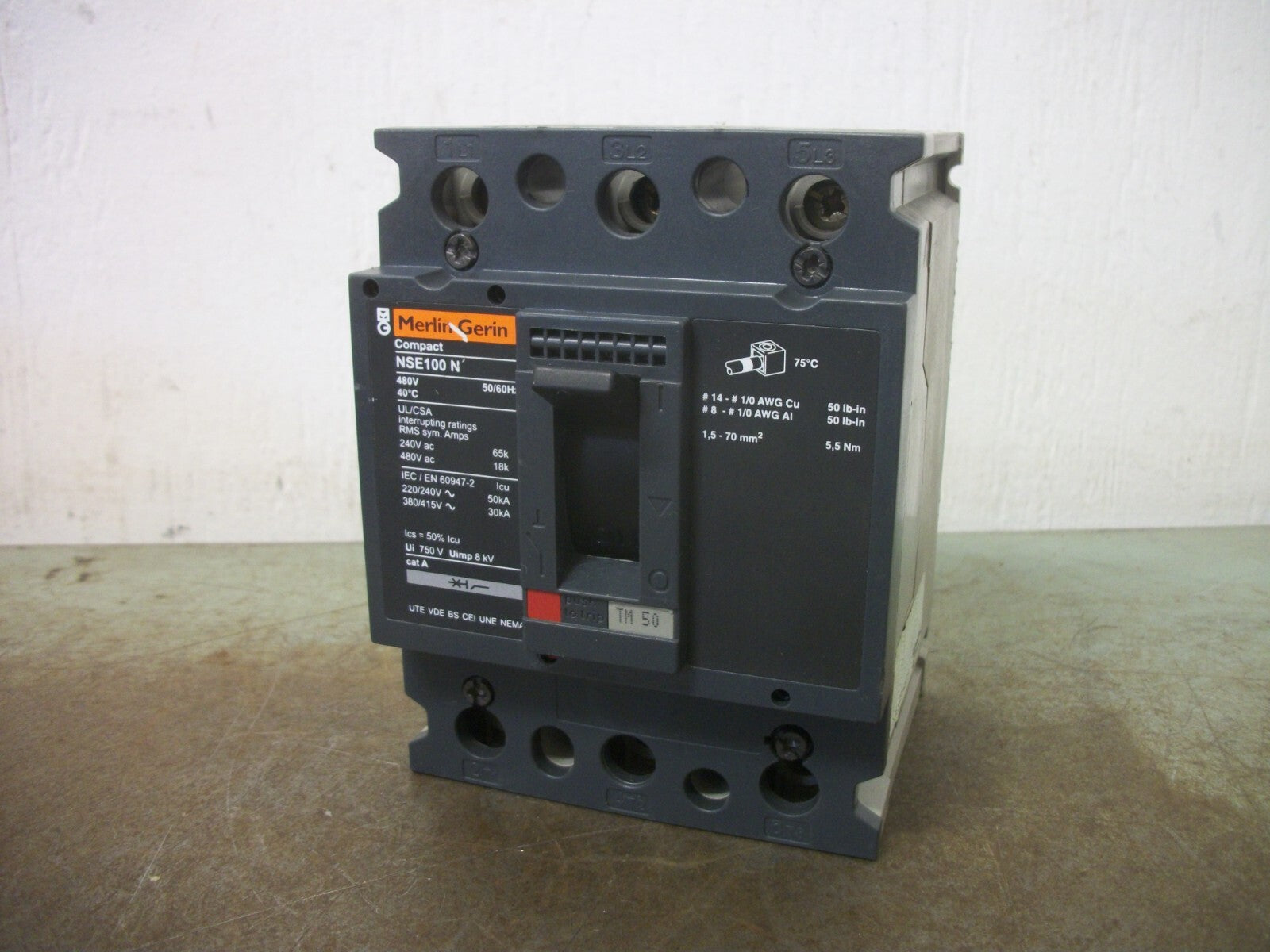 MERLIN GERIN COMPACT NSE100N CIRCUIT BREAKER NENL34050 50AMP 480VOLT 3POLE