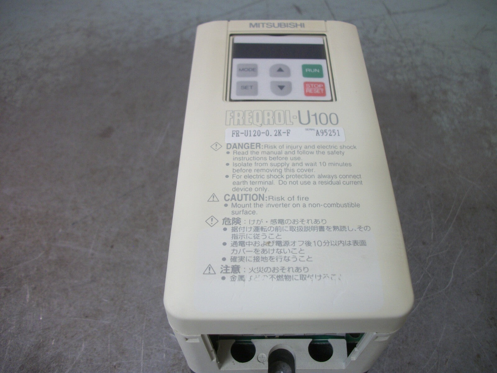 MITSUBISHI FREQROL-U100 0.2KW INVERTER DRIVE FR-U120-0.2K-F 230VOLT 3PH 1.4AMP