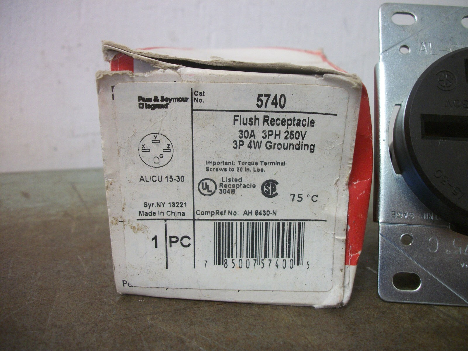 PASS & SEYMOUR FLUSH RECEPTACLE 5740 30AMP 250VOLT 3PH 3P 4W GRND NIB