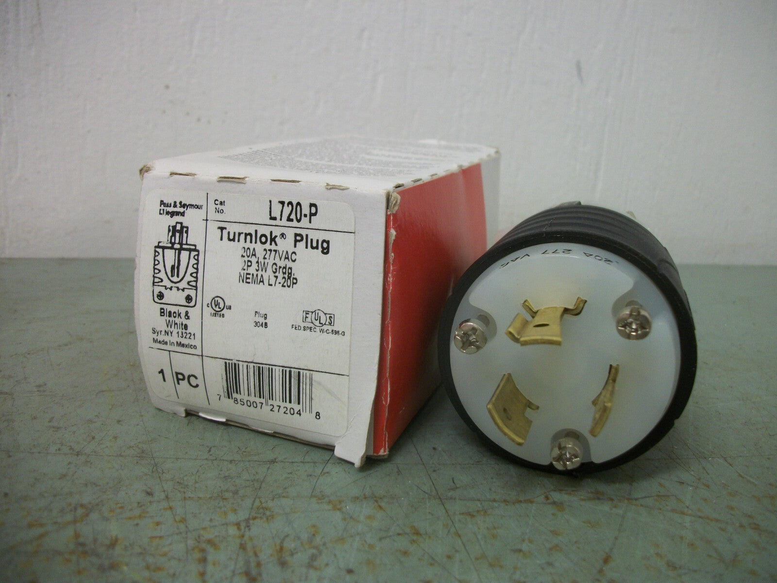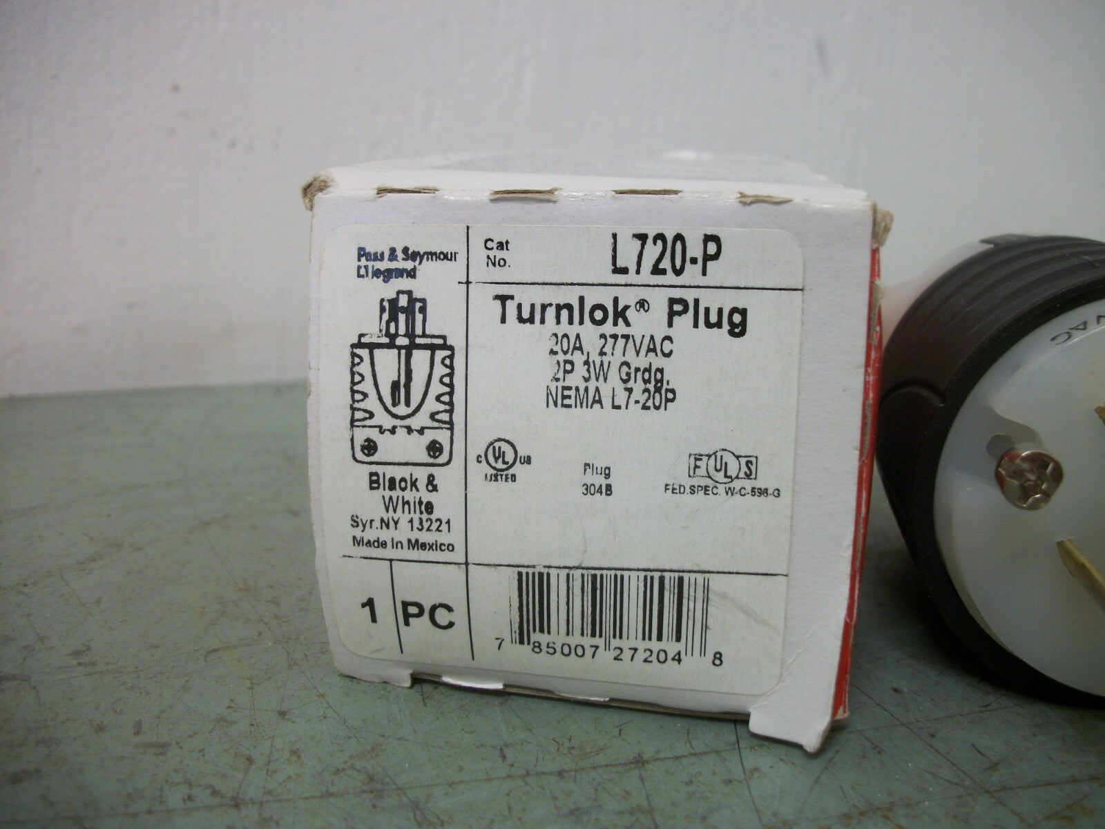 PASS & SEYMOUR TURNLOK PLUG L720-P 20AMP 277VOLT 2P 3W+G NIB