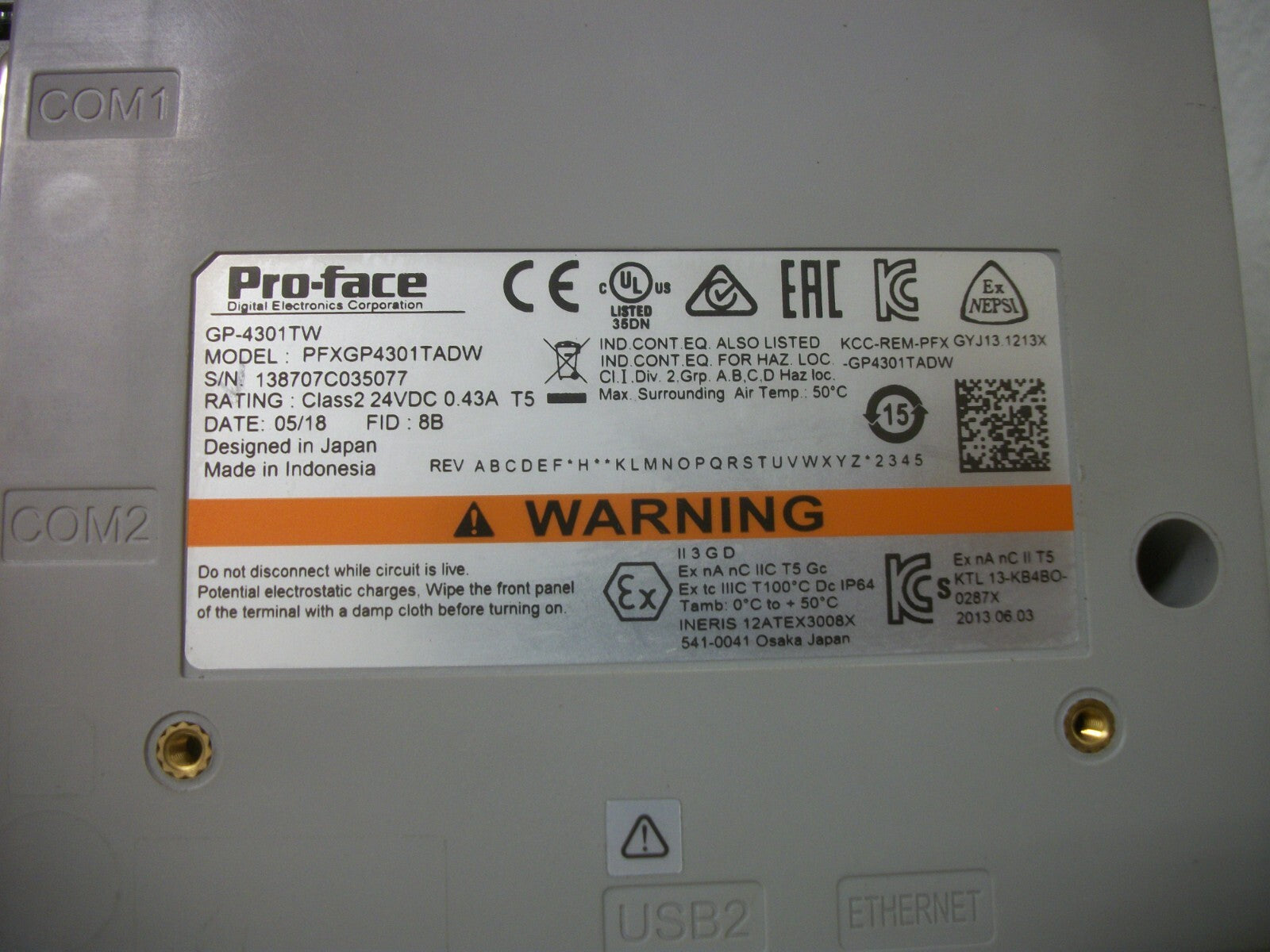 PRO-FACE DIGITAL TOUCH SCREEN OPERATOR INTERFACE DISPLAY GP-4301TW