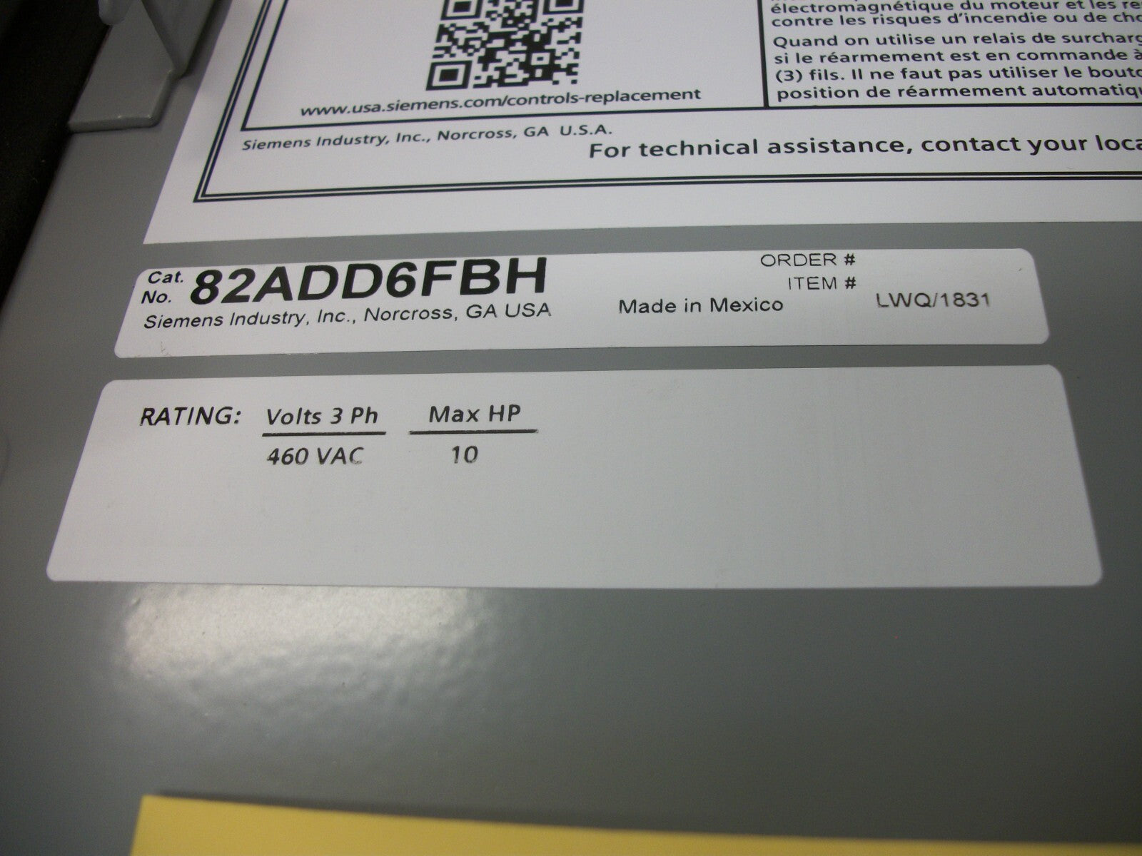 SIEMENS 3PH PUMP CONTROL PANEL 3R 82ADD6FBH 460VOLT 10HP 30AMP FUSIBLE NOB