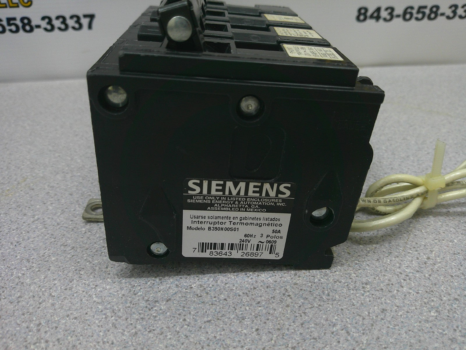 SIEMENS BL CIRCUIT BREAKER B350H00S01 50AMP 240VOLT 3POLE W/SHUNT CHIPPED