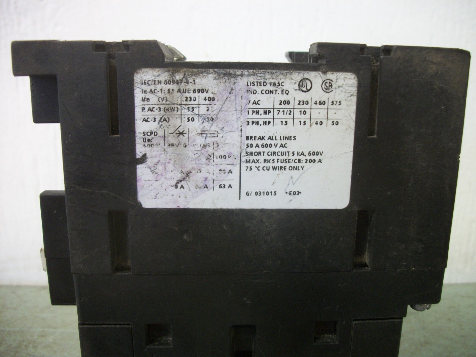 SIEMENS CONTACTOR 3RT1036-1BB44 50AMP 24VCOIL 3PH 600V 50HP