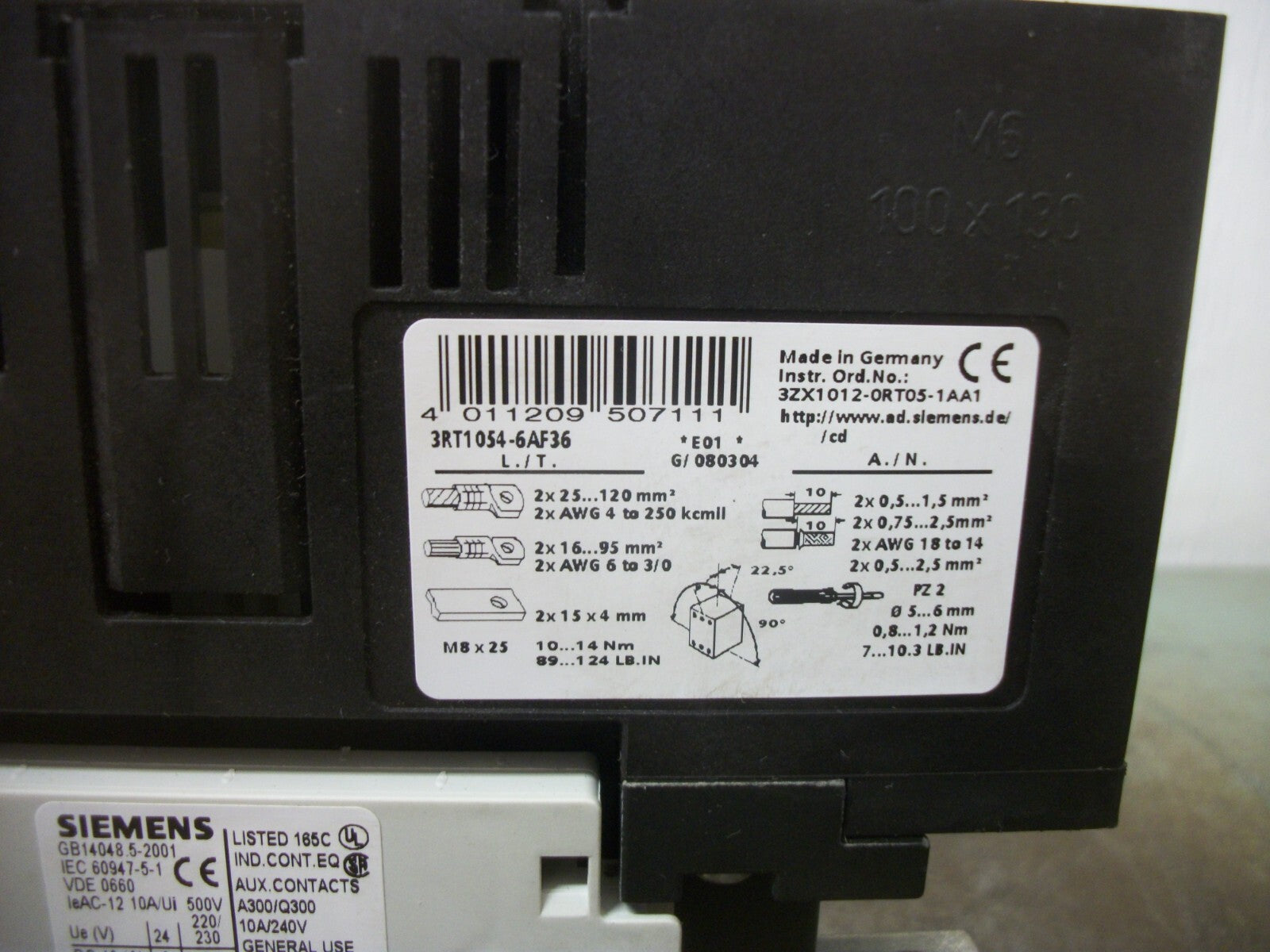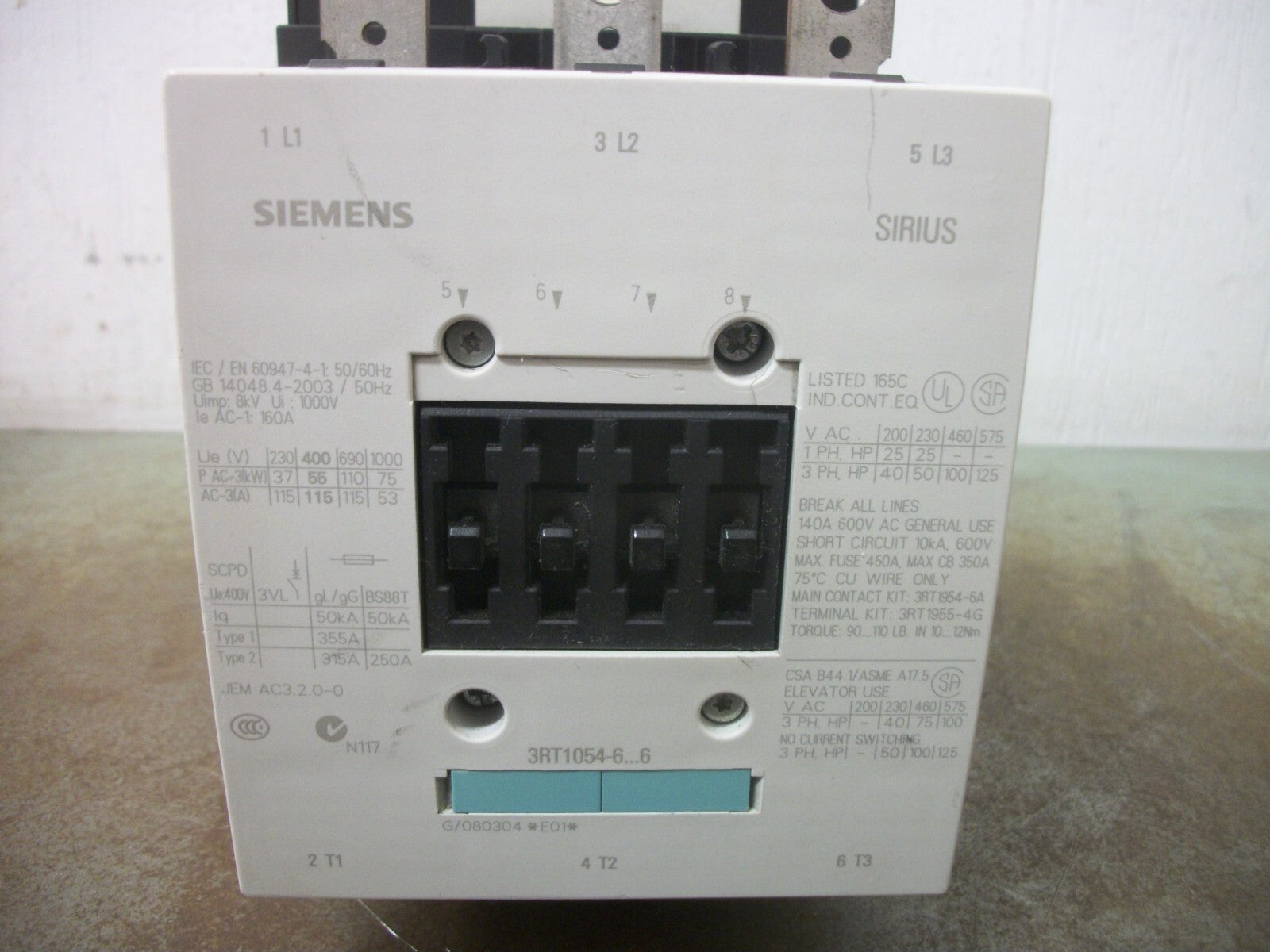 SIEMENS CONTACTOR 3RT1054-6AF36 140AMP 127VCOIL 3PH 600V 125HP NOB