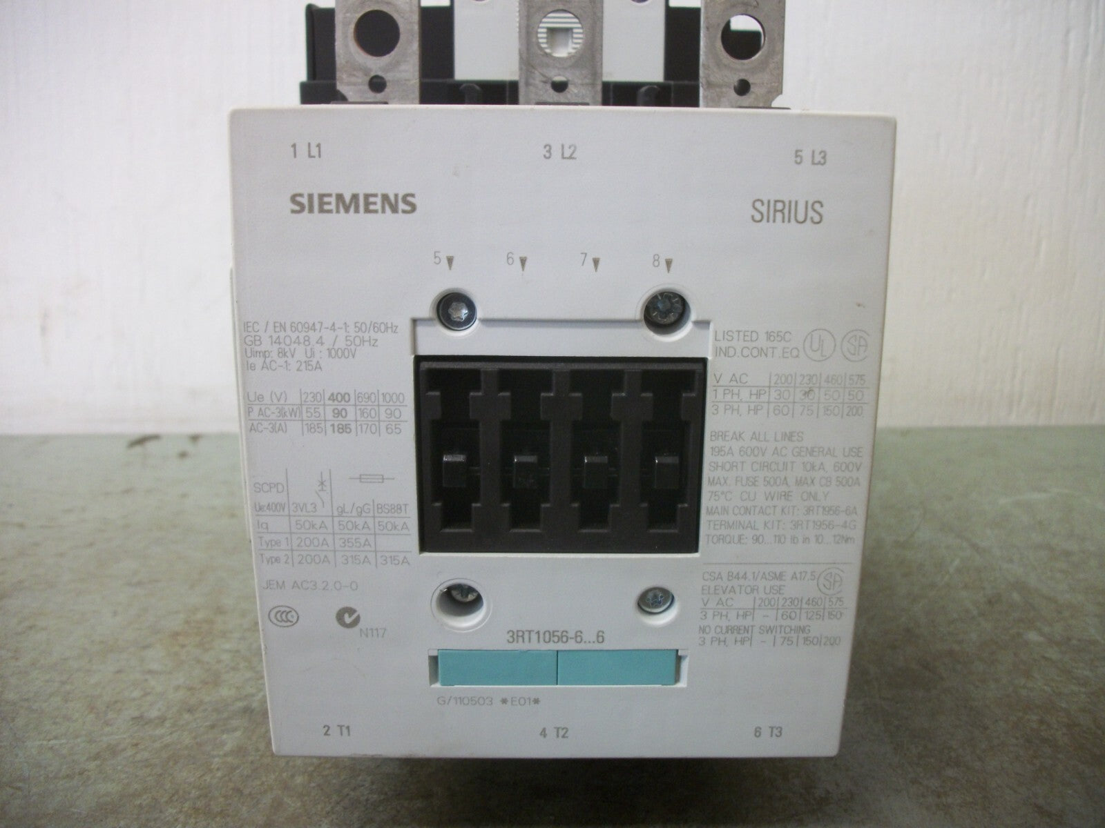 SIEMENS CONTACTOR 3RT1056-6AF36 195AMP 110-127VCOIL 3PH 600V 3POLE 200HP