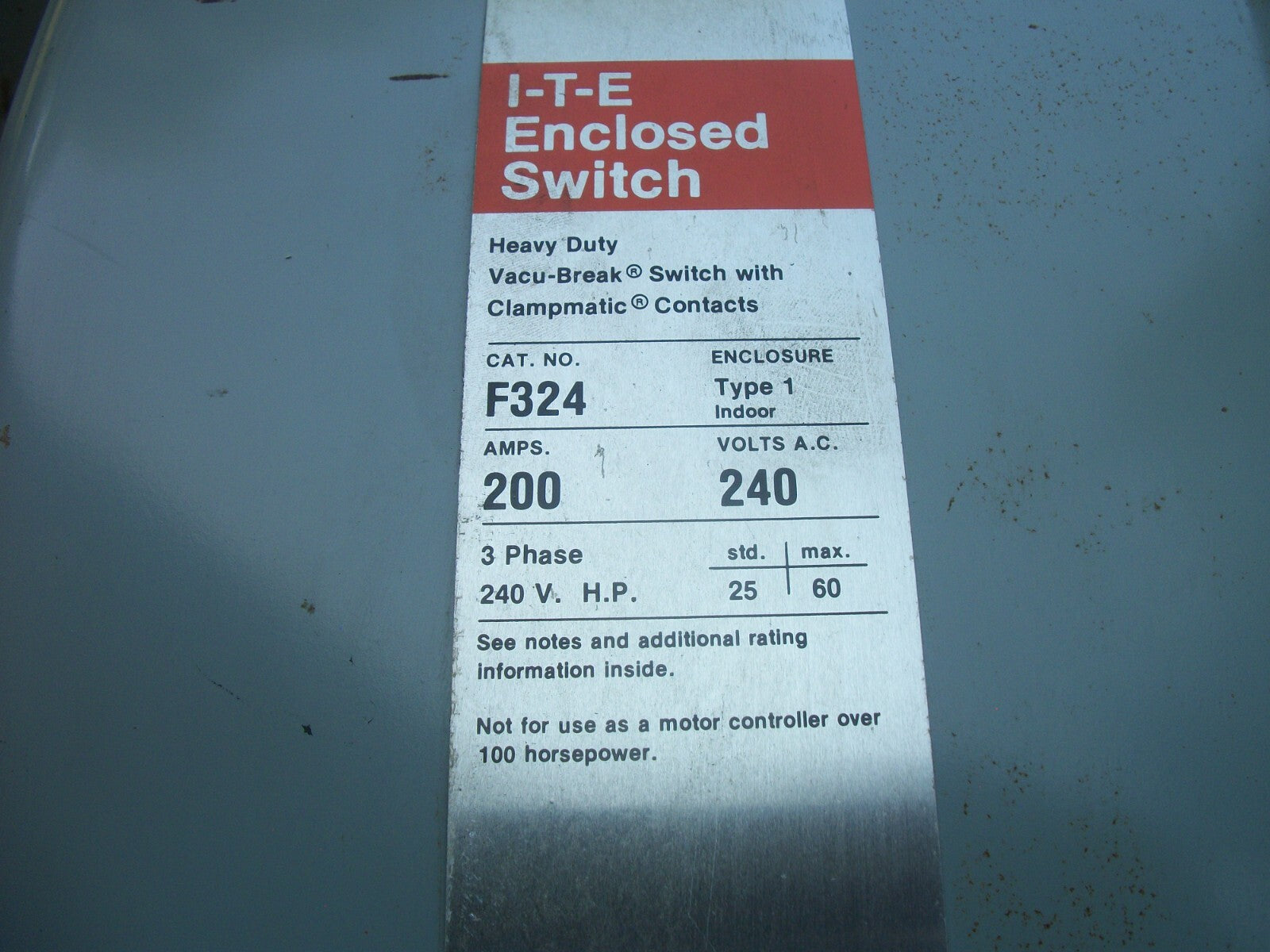SIEMENS DISCONNECT TYPE 1 F324 200AMP 240VOLT 3POLE FUSIBLE