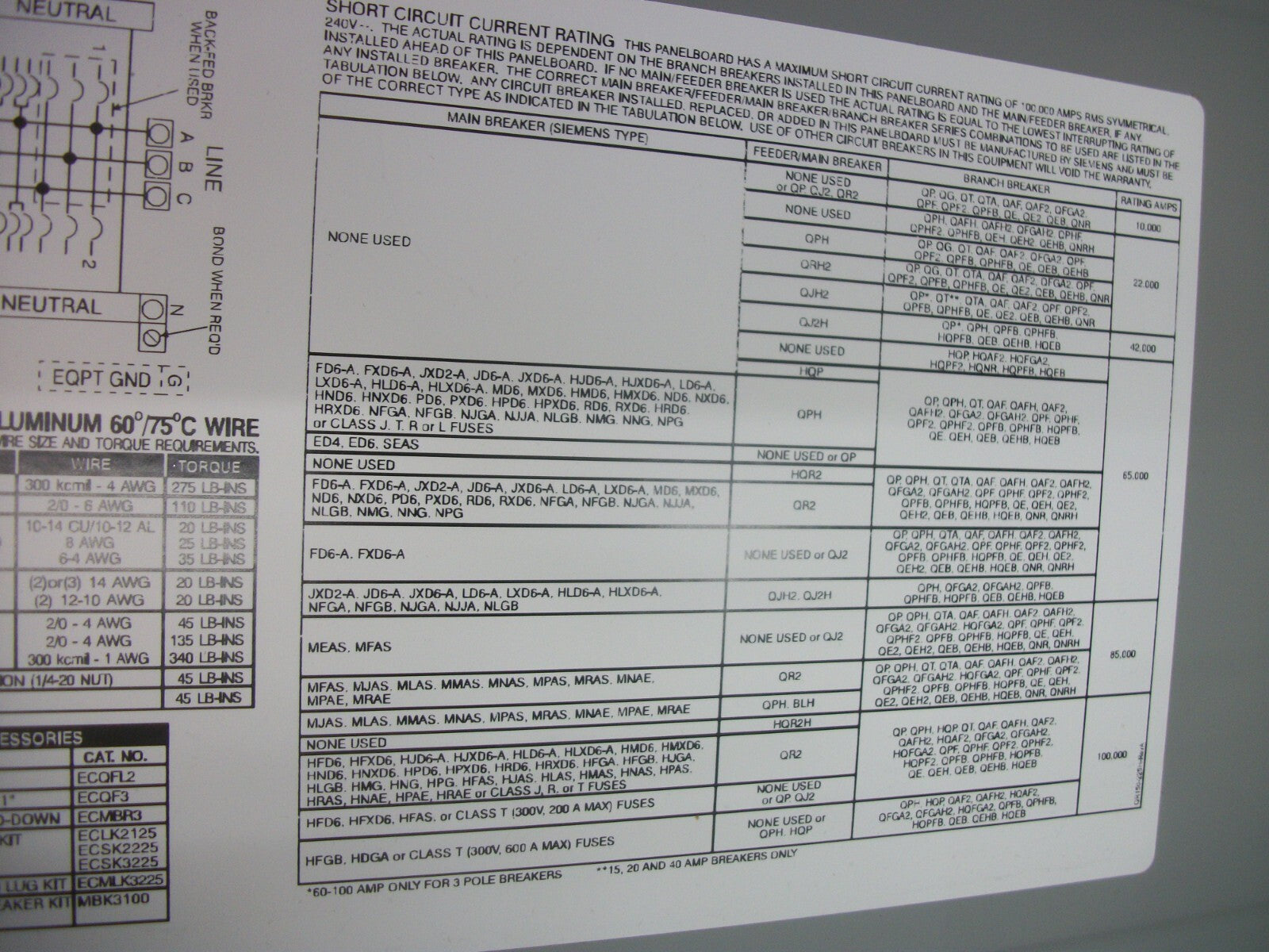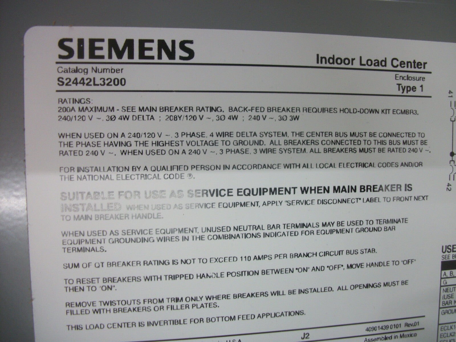SIEMENS ES SERIES LOAD CENTER PANELBOARD S2442L3200 200AMP 240VOLT 3PH 3-4W NIB