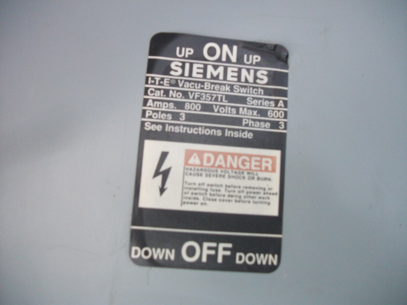 SIEMENS FUSIBLE VACU-BREAK SWITCH VF357TL 800AMP 600VOLT 3POLE