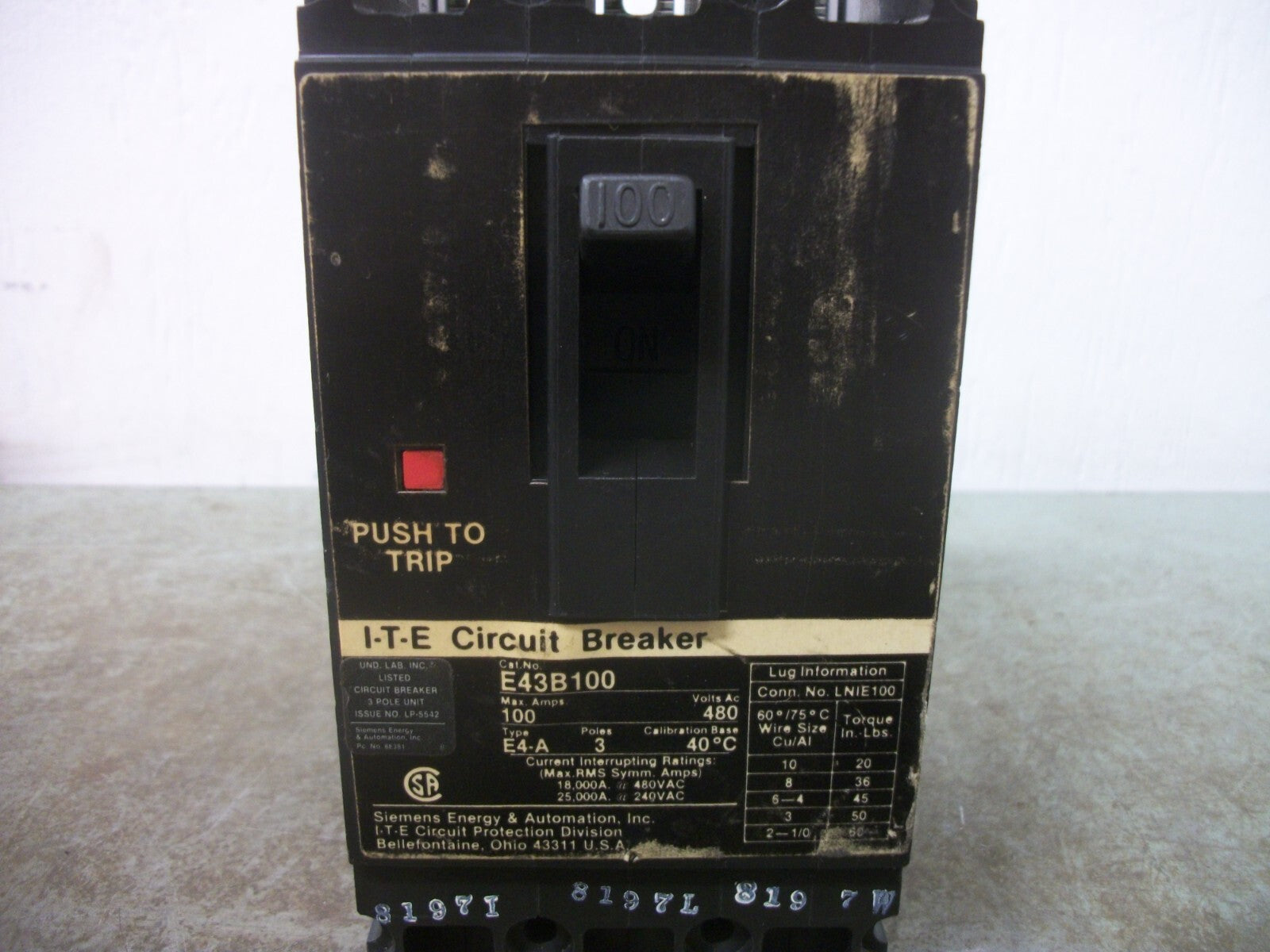 SIEMENS ITE E4-A CIRCUIT BREAKER E43B100 100AMP 480VOLT 3POLE