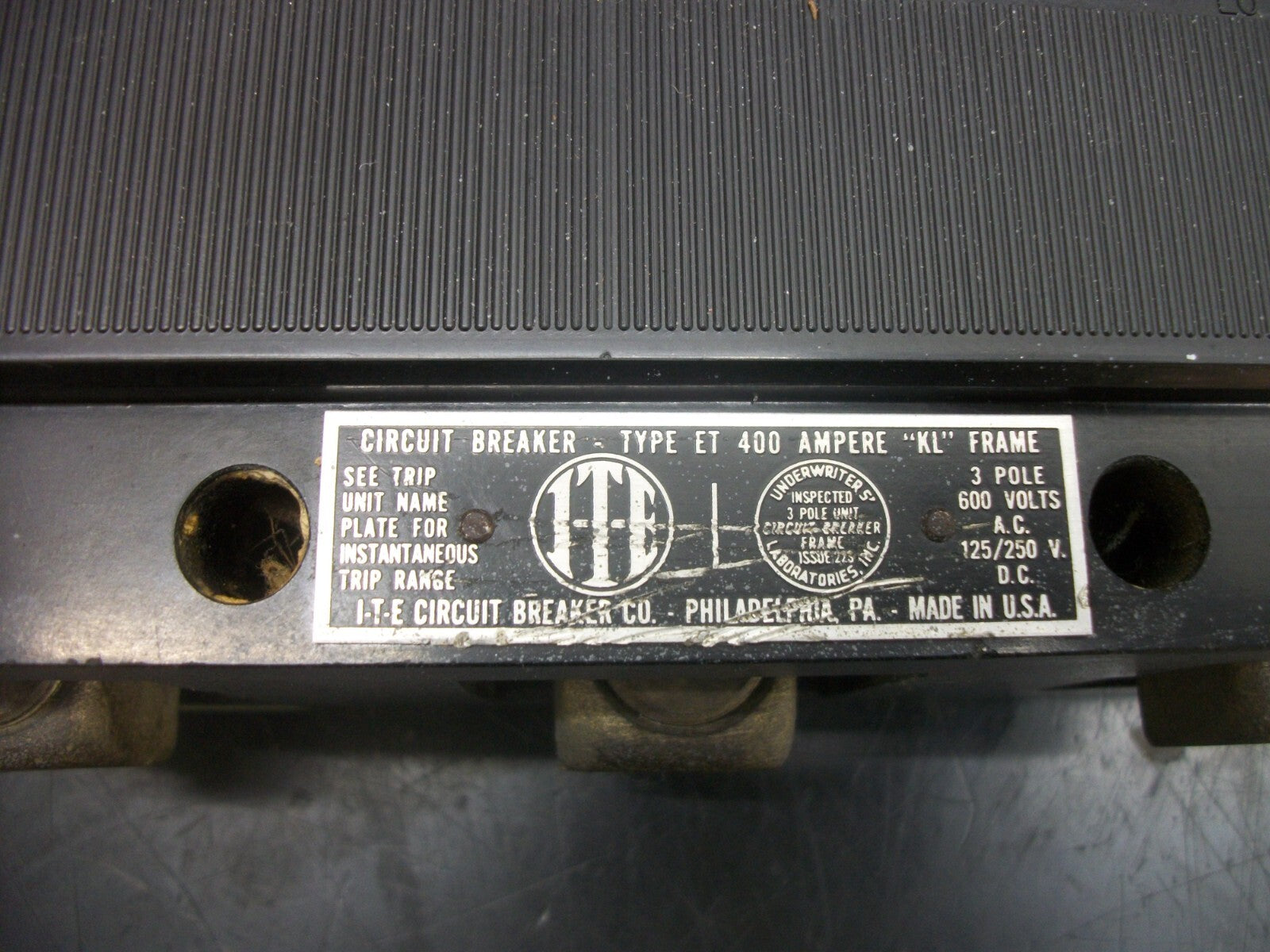 SIEMENS ITE ET KL CIRCUIT BREAKER KL3400F 400AMP 600VOLT 3POLE W/400A TRIP