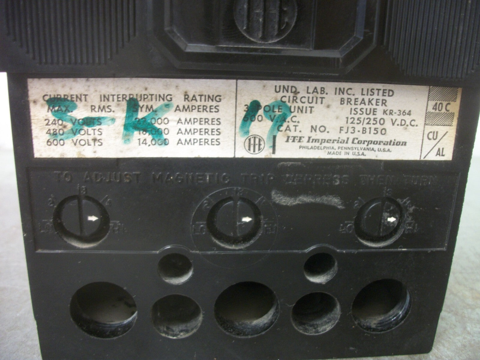 SIEMENS ITE FJ3 CIRCUIT BREAKER FJ3B150 150AMP 600VOLT 3POLE
