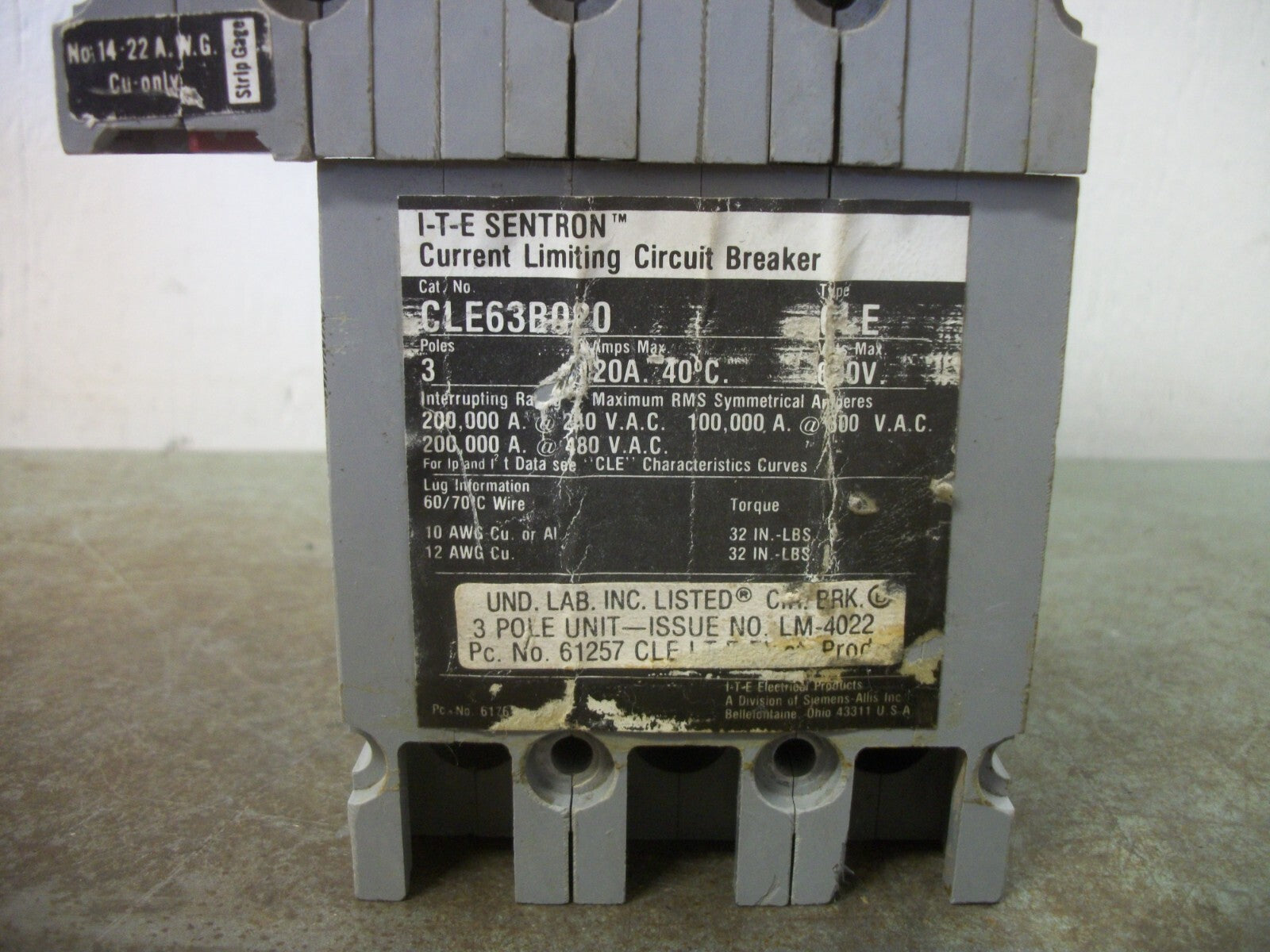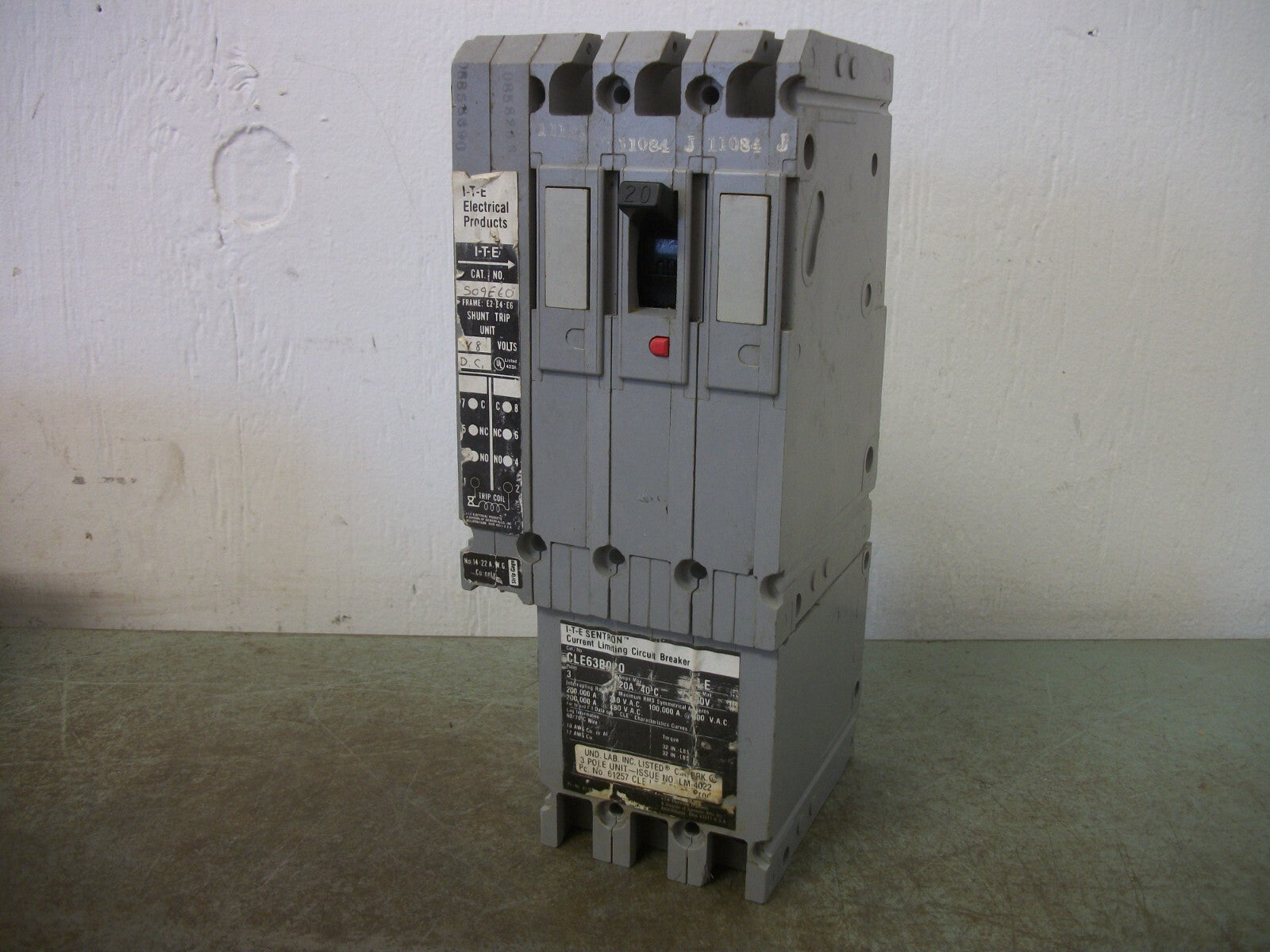 SIEMENS ITE SENTRON CLE CIRCUIT BREAKER CLE63B020 20AMP 600VOLT 3POLE W/SHUNT