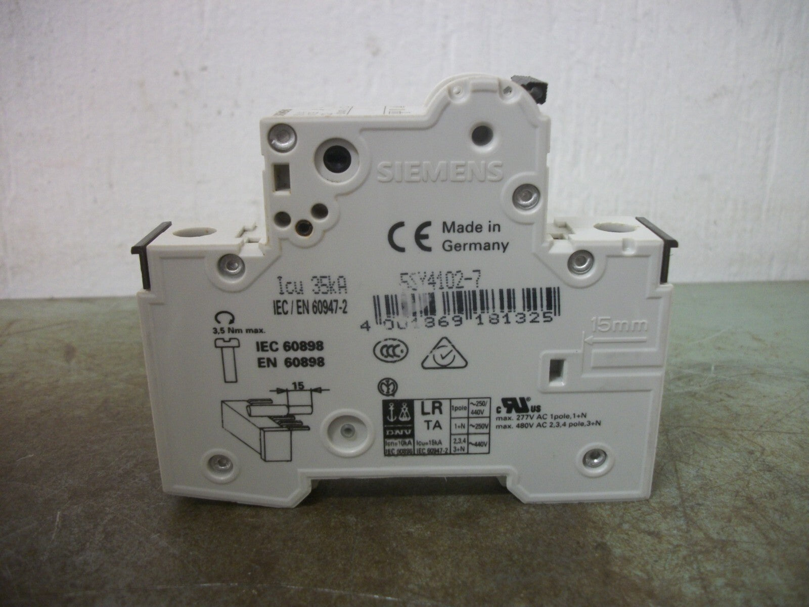 SIEMENS MINI CIRCUIT BREAKER 5SY41MCBC2 5SY4102-7 2AMP 400VOLT 1POLE