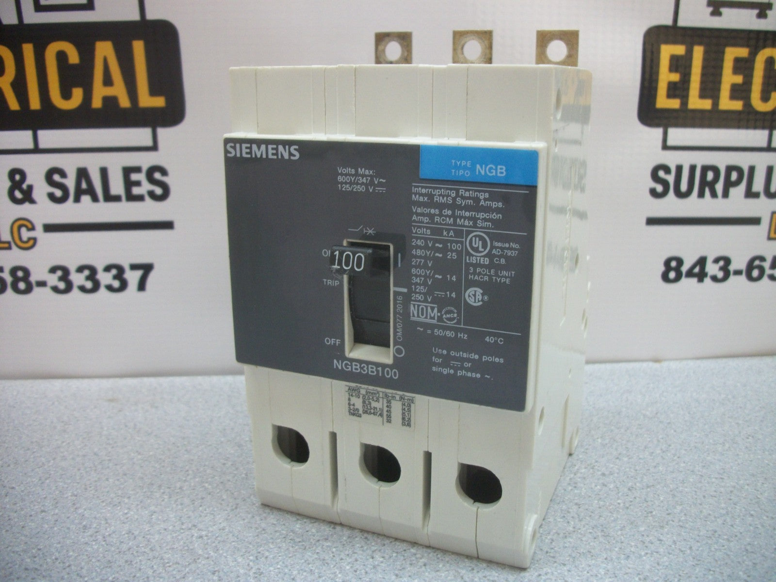 SIEMENS NGB CIRCUIT BREAKER NGB3B100 100AMP 600VOLT 3POLE NOB