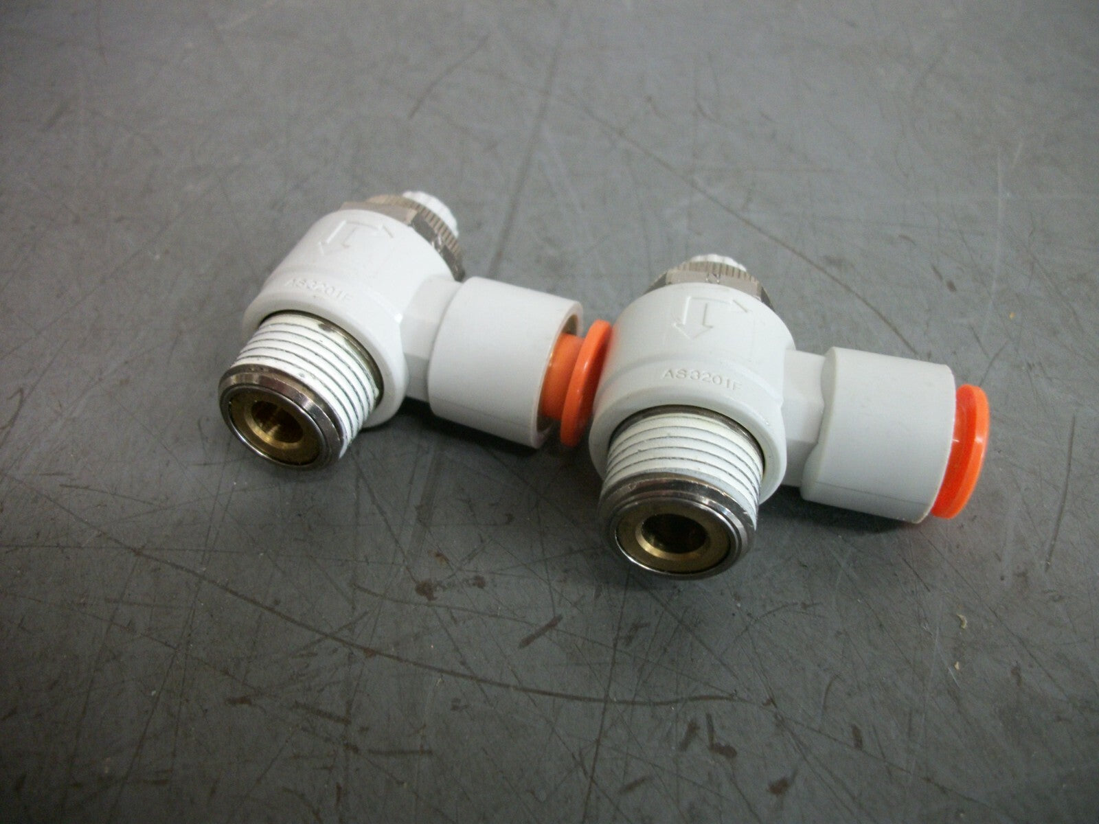 SMC LOT OF 2 3/8" PUSH TO CONNECT SPEED CONTROL VALVES AS3201F NOB