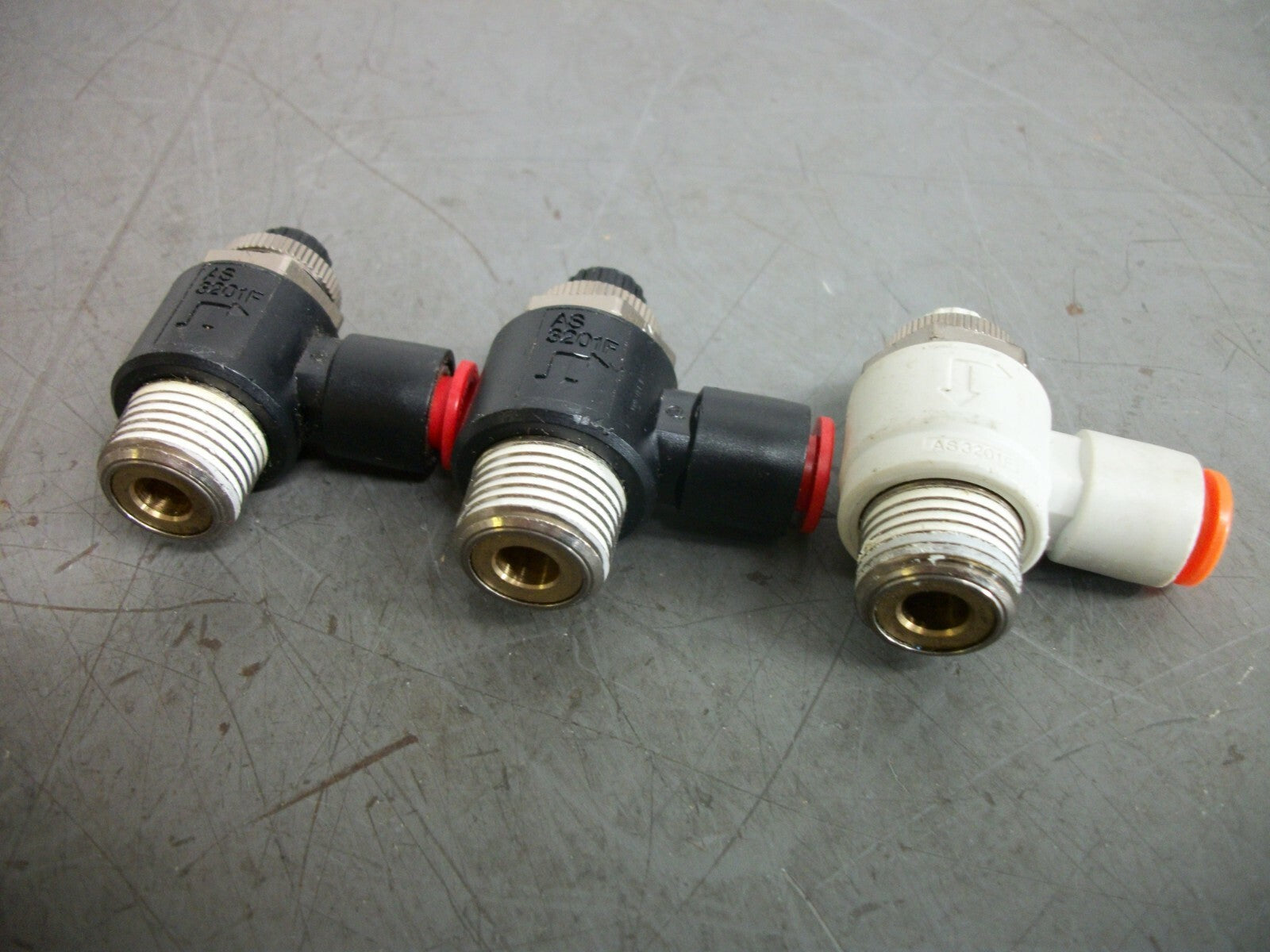 SMC LOT OF 3 5/16" PUSH TO CONNECT SPEED CONTROL VALVES AS3201F NOB