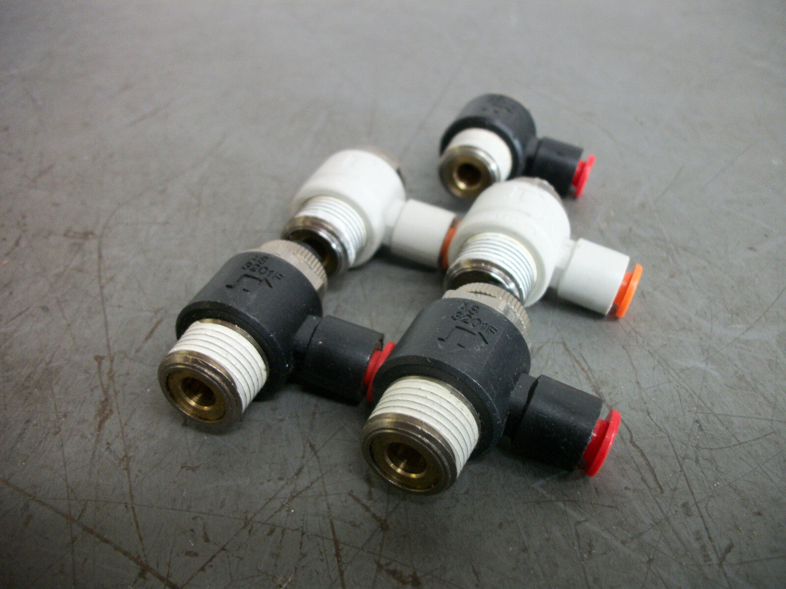 SMC LOT OF 5 1/4" PUSH TO CONNECT SPEED CONTROL VALVES AS3201F NOB
