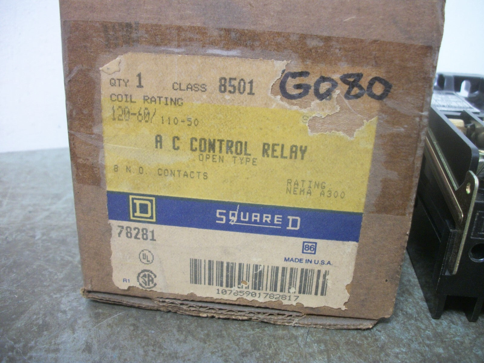SQUARE D AC CONTROL RELAY 8501GO80 120VCOIL NIB