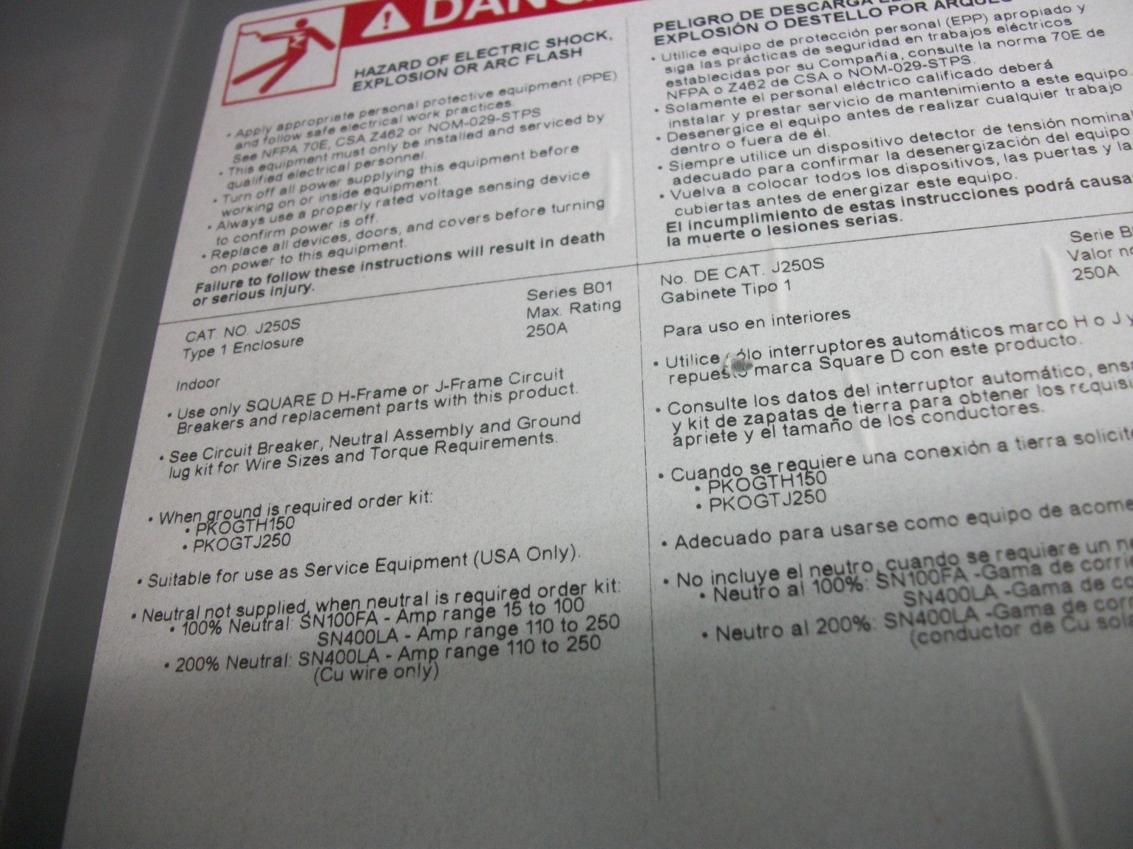 SQUARE D CIRCUIT BREAKER ENCLOSURE J250S 250AMP 600VOLT