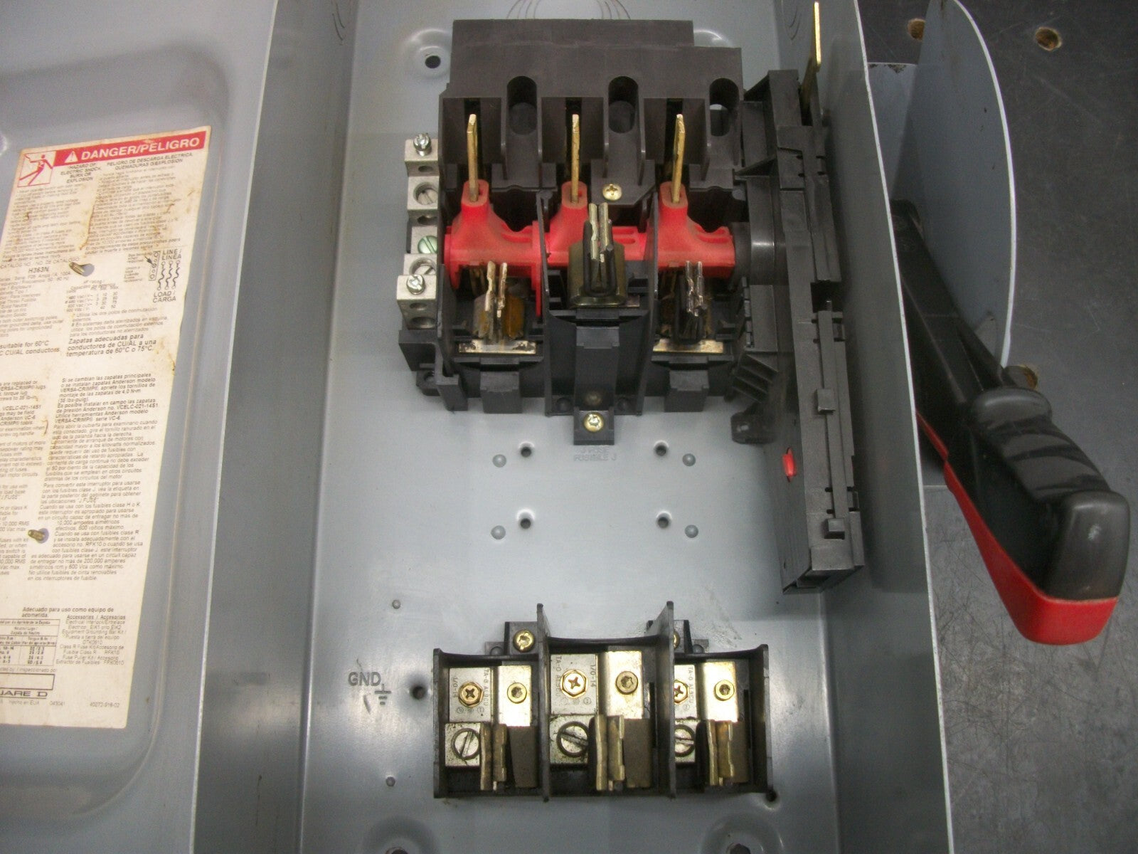 SQUARE D DISCONNECT TYPE 1 H363N 100AMP 600VOLT 3POLE FUSIBLE