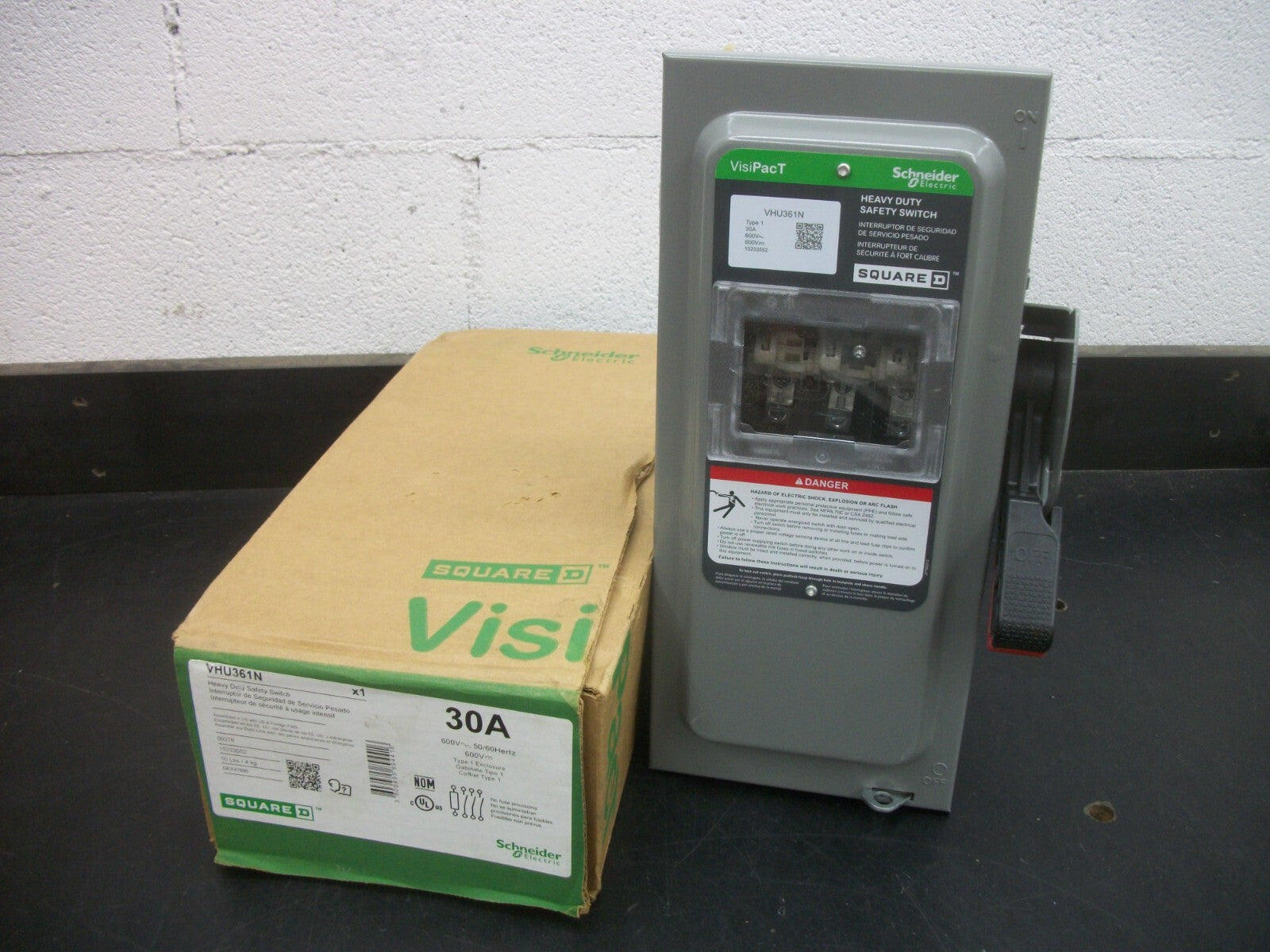 SQUARE D DISCONNECT TYPE 1 VHU361N 30AMP 600VOLT 3POLE FUSIBLE NIB