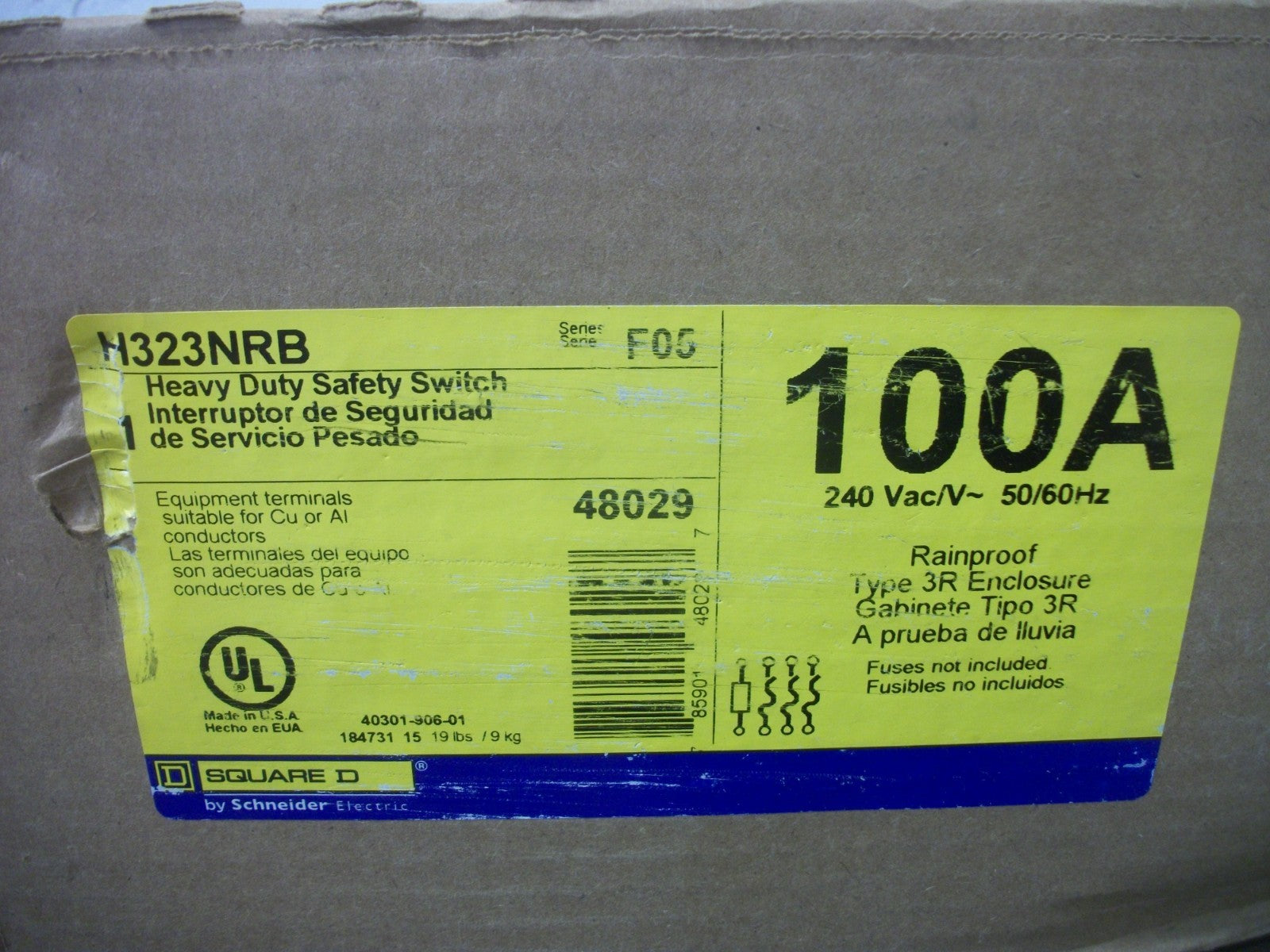 SQUARE D DISCONNECT TYPE 3R H323NRB 100AMP 240VOLT 3POLE FUSIBLE NIB