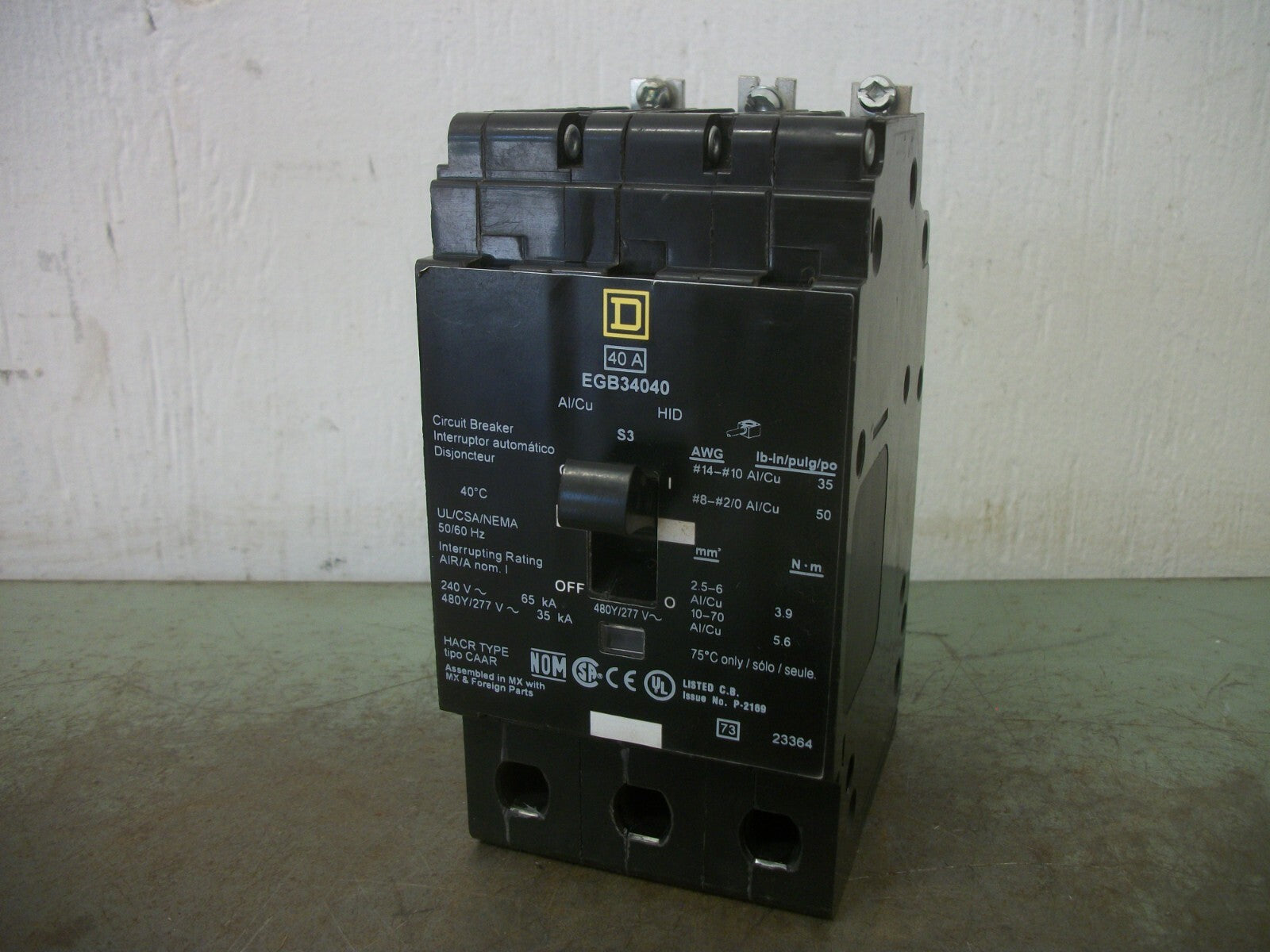 SQUARE D EGB CIRCUIT BREAKER EGB34040 40AMP 480VOLT 3POLE