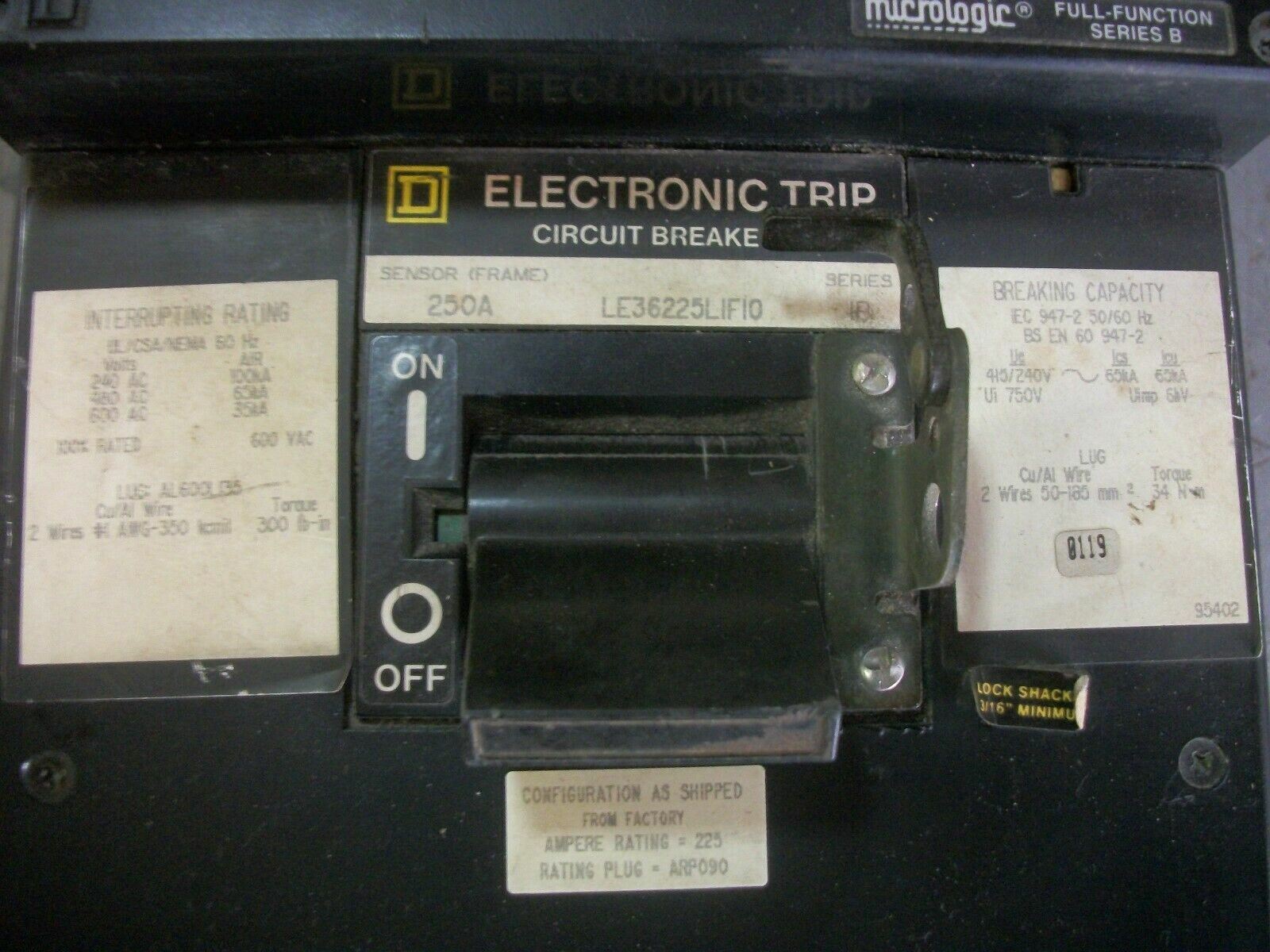 SQUARE D ELECTRONIC TRIP CIRCUIT BREAKER LE36225LIF10 225AMP 600VOLT 3POLE