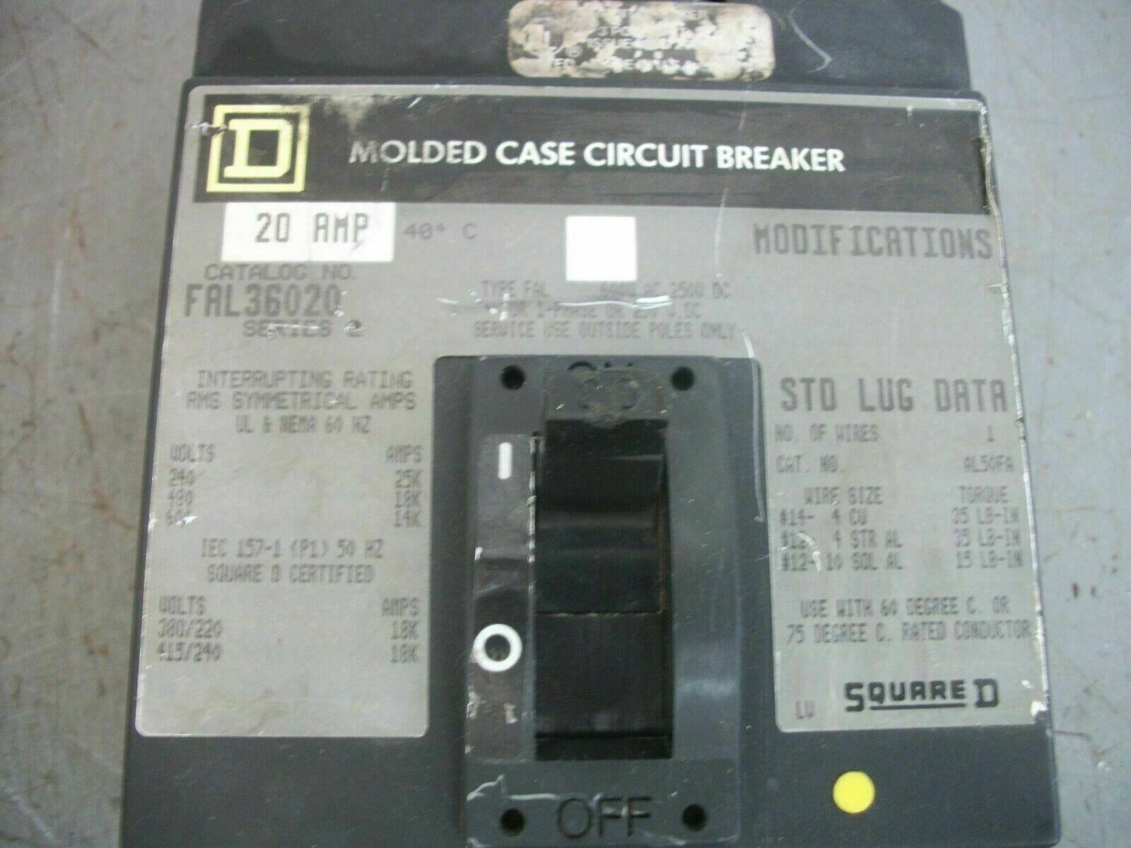 SQUARE D FAL CIRCUIT BREAKER FAL36020 20AMP 600VOLT 3POLE GRAY