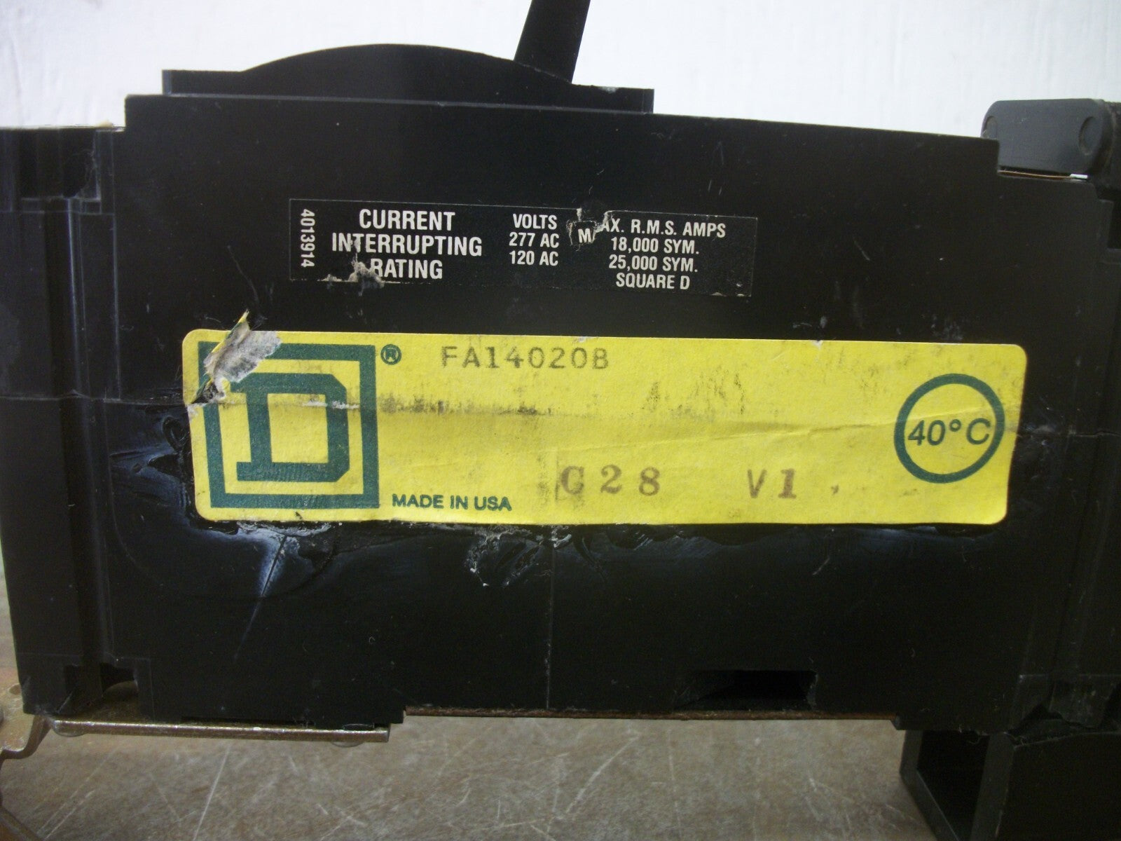 SQUARE D I-LINE FA CIRCUIT BREAKER FA14020B 20AMP 277VOLT 1POLE GRAY
